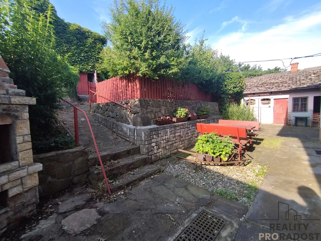 ☑️na společné zahrádce se nachází technické místnosti zast.p. 34 m2, sklep, dále prostor pro posezení a také dílna a z horní ulice přístupná garáž zast.p. 27 m2