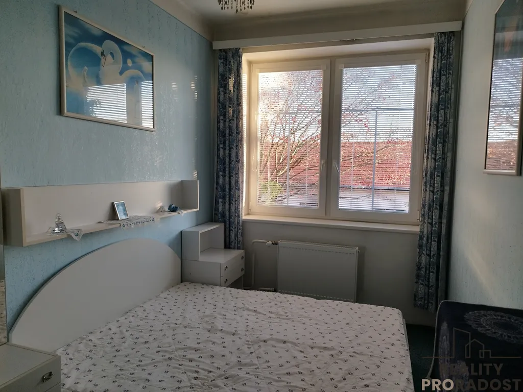 V patře, které je nejnovější je pak bytová jednotka 2+kk: chodba, koupelna s rohovou vanou, WC, prostorný obývací pokoj a kuchyňský kout a dále pokoj, který lze příčkou případně rozdělit na dva malé ( původně zde byly dva dětské pokojíčky )