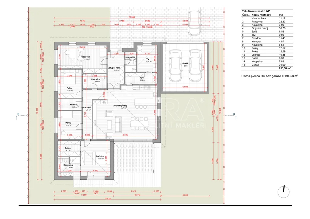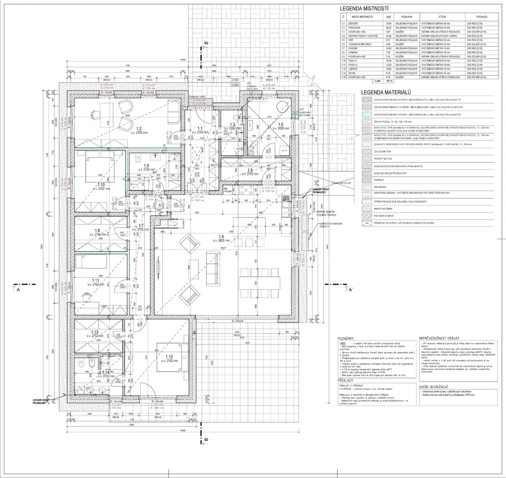 Celková podlahová plocha 195 m2 + zpevněna plocha 161 m2. Dům je technologicky vyspělou a mimořádně energeticky úspornou stavbou, tepelné čerpadlo, podlahové vytápění a kvalitní dřevena okna s trojskly, rekuperace, centrální vysavač, posuvný HS Portal, příprava na venkovní žaluzie, což zajišťuje vysoký komfort a minimální provozní náklady. Použito obvodové zdivo s dodatečným zateplením pro skvělou tepelnou izolaci. Dešťová voda je shromažďována v podzemní nádrži a lze ji využít na zavlažování zahrady i pro domácí spotřebu.