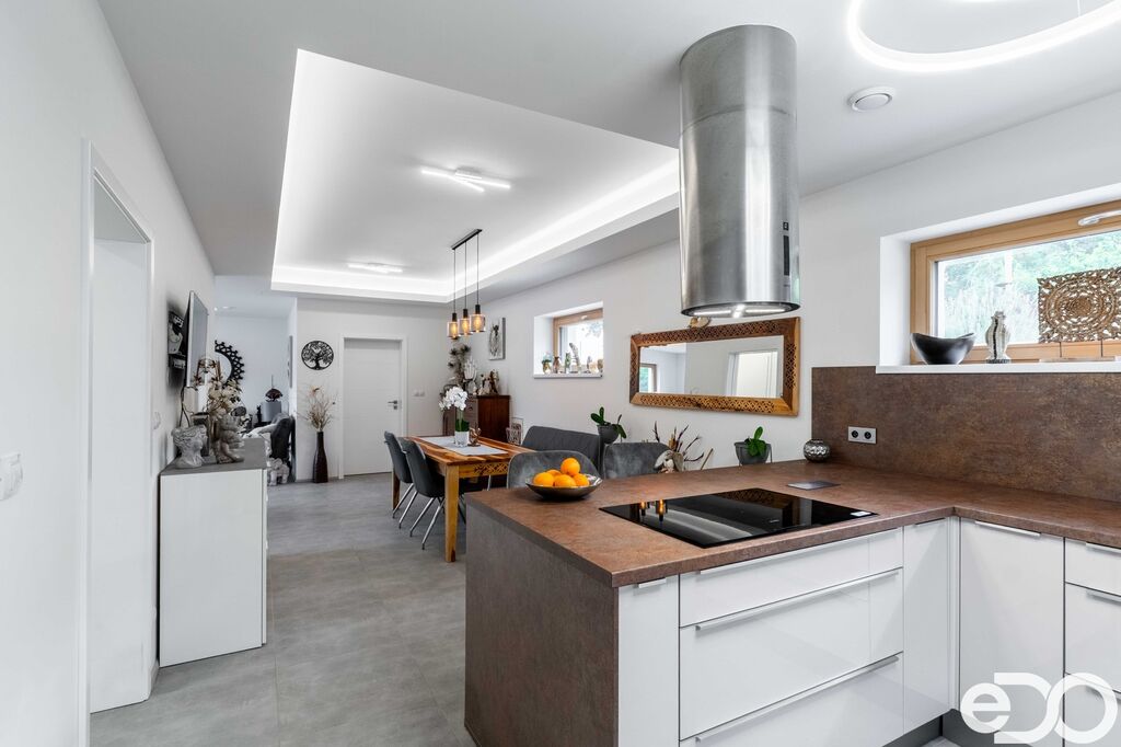 NOVÁ CENA! Pokud jste někdy hledali opravdu klidné místo k bydlení, tady ho najdete. Široko daleko nenajdete větší ticho a přitom jste jen 30 minut od Prahy. Ve Zvánovicích na vás čeká novostavba rodinného domu 5+kk o užitné ploše 162 m², obklopená nekonečnou přírodou Voděradských bučin. Klid, prostor a čistý vzduch – ideální pro každého, kdo hledá skutečné útočiště mimo městský ruch, a to v úspornější variantě s menším pozemkem. Z obývacího pokoje se otevírá krásný výhled do okolní přírody. Velké HS portály z kombinace dřeva a hliníku zajišťují nejen dostatek světla, ale i výbornou tepelnou a zvukovou izolaci. Všechna okna i dveře jsou z prvotřídních materiálů a vybavena trojskly.