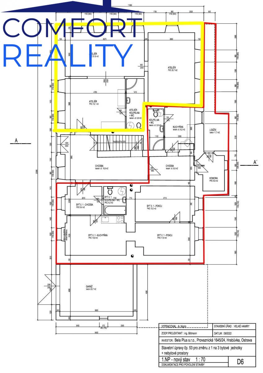 Nabízíme exkluzivně k prodeji rodinný dům se 3 byty a ateliérem. V 1. NP se nachází ateliér s koupelnou a WC o podlahové ploše 66 m2 a byt o dispozici 2+1+šatna se dvěma koupelnama a WC o podlahové ploše 74 m2. Ve 2. NP se nachází dva byty po částečné rekonstrukci-byt 2+1+šatna o podlahové ploše 69 m2 a byt 2+1+komora+šatna a dvě koupelny s WC. Sklep, kde je technické zázemí má podlahovou plochu 183 m2. Objekt lze využívat k bydlení, pronajímání nebo jako sídlo firmy.