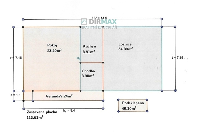 Stavba disponuje jedním nadzemním podlažím a její zastavěná plocha je 113 m2. Dům je částečně podsklepený, výměra sklepa je necelých 50m2. Stavba je zděná s kamennou podezdívkou. Vše původní, včetně střechy a oken, ale plně funkční! Po určitých úpravách vhodné k trvalému bydlení.