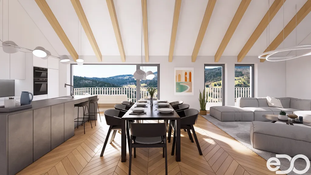 Stranou od lyžařského areálu, ale se stejným, ne-li lepším výhledem od Ještědu, přes Javorník až po Bukovec - výhled z Vašeho budoucího obývacího pokoje Vám bude závidět nejedna návštěva!