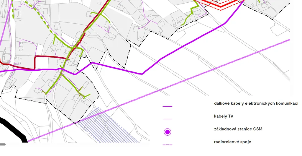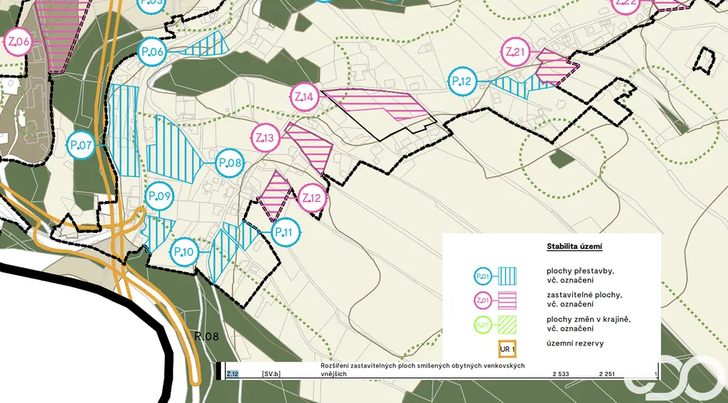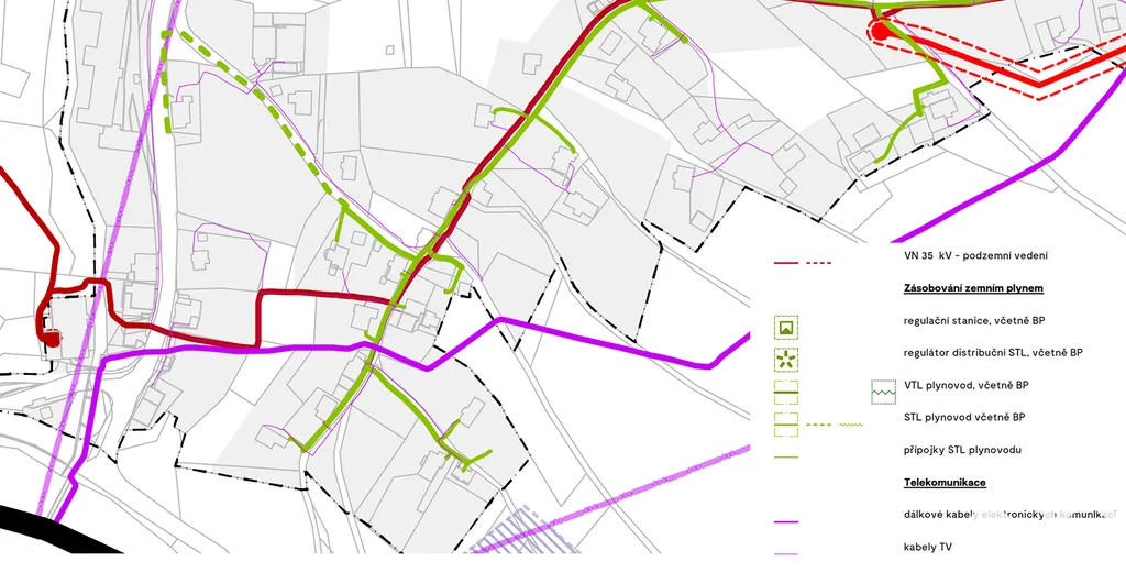 Dle současně platného územního plánu, změny č.3, se pozemek nachází v ploše zastavitelné Z.12 [SV.b] - rozšíření zastavitelných ploch obytných venkovských vnějších, v plochách smíšené obytné - venkovské vnější. Na pozemku se nachází napojení na elektřinu a internet, vodovodní řád a splašková kanalizace je vedena ulicí pod pozemkem.