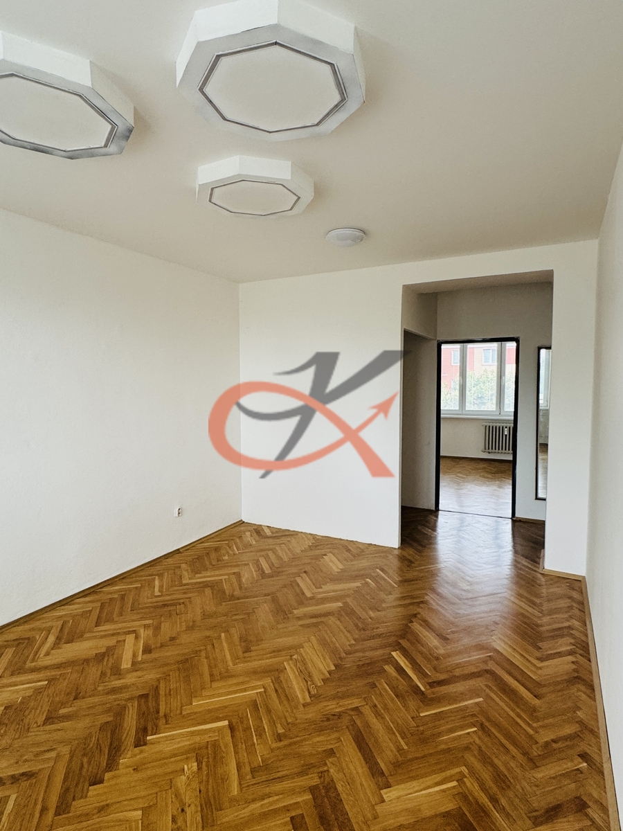 Dispozice bytu 3+1 o podlahové ploše 64m² skýtá mnoho možností, jak využít, upravit či změnit stávající prostor. Jednotlivé pokoje jsou neprůchozí, kuchyně je natolik prostorná, že se do ní vejde jídelní kout, ze kterého je výhled na zeleň. Výhled do zeleně a klidové zóny je také z balkónu (4m²), jedná se o západní orientaci. Dále je k dispozici praktická šatna, kterou lze propojit s ložnicí/pokojem a ušetřit tak prostor pro šatní skříň v samotné místnosti. Popř. může prostor sloužit jako pracovna, dílna nebo sklad méně používaných věcí. Jádro bytu je původní, takže lze jednoduše odstranit a nahradit zděnou příčkou a např. zvětšit prostor pro koupelnu a WC. Další úložný prostor pro šaty a obuv lze vybudovat na chodbě. Součástí bytu je také sklepní box na I.PP domu.