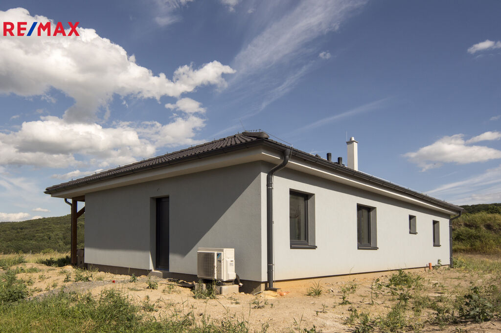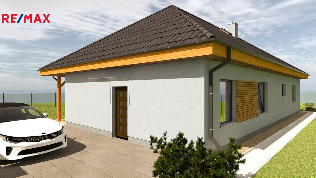 Hledáte svůj nový domov? Máme pro Vás novostavbu bungalovu se skvělou dostupností Prahy! Nabízíme ekonomicky úspornou stavbu jednopodlažního domu v rámci developerského projektu (4 zděné domy a 2 levnější dřevostavby s menším pozemkem) s užitnou plochou 121 m2 na pozemku o ploše 1036 m2, navrženou tak, aby splňovala současné nároky na moderní domov. Tak je koncipován i interiér bugalovu s dipozicí 4+kk. Za vchodem do budovy se nachází technická místnost, dále jsou umístěny 3 ložnice, 2 z nich mají vlastní šatnu, z chodby je dále vstup do koupelny s WC a do dalšího, samostatného WC. V čele chodby vstoupíme do prostorného, světlého obývacího pokoje s přípravou na kuchyňský kout. Zde jsou francouzská okna do zahrady.