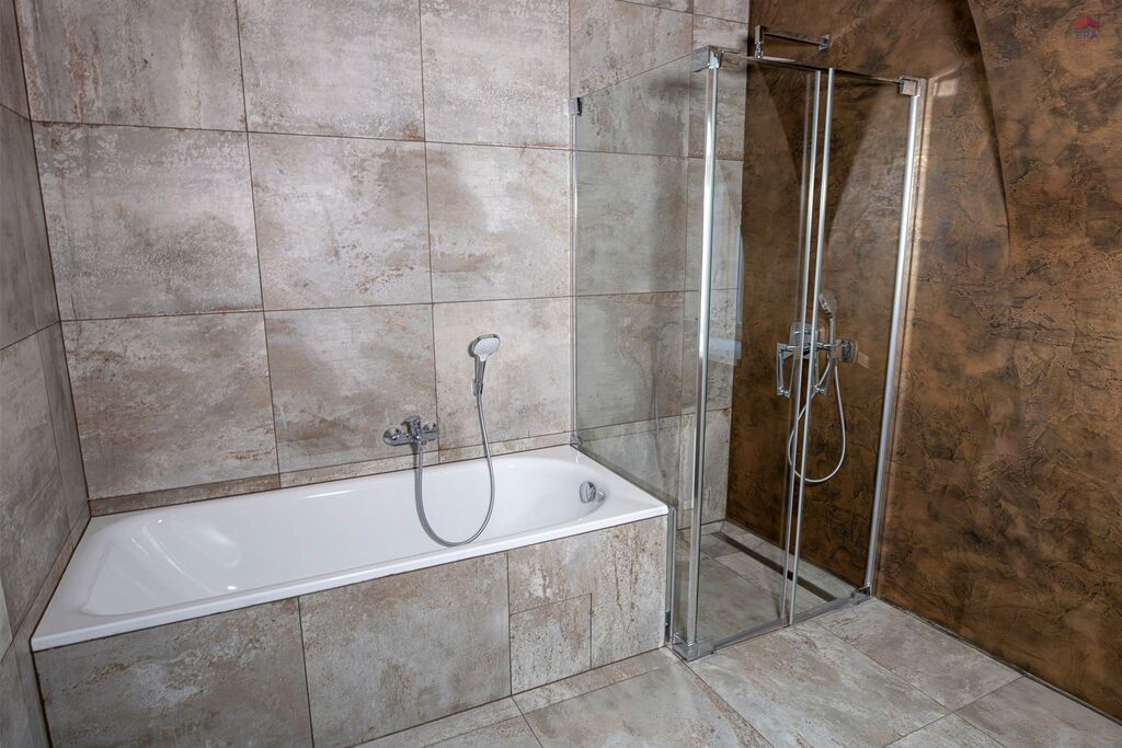 Dům, ve kterém se byt nachází, je postaven z kvalitních materiálů – směs cihly, kamene a dalších, v celém domě jsou nová dřevěná okny. V bytě nové dřevěné podlahy, nové rozvody elektro, a vodoinstalace, nové odpady, nové podlahové topení , zdroj tepla samostatný plynový kotel . V koupelně vana i sprchový kout, dvě umyvadla a WCCOMBI., přidán elektrický radiátor. V pokoji s kuchyňskou linkou kuchyňská linka na míru, vestavěná lednice, mrazák, vestavěná myčka, elektrická indukce, el.sporák ,vestavná mikrovlná trouba, závěsná digestoř.