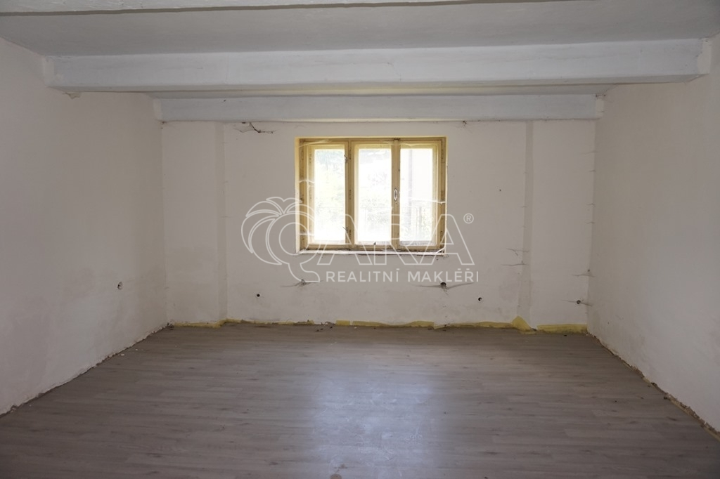 Nabízíme k prodeji rodinný dům určený ke kompletní rekonstrukci, která již započala vyklízecími a přípravnými pracemi a také částečně zhotovenou instalací elektřiny. Dům je rozdělen na dvě části rozdělené menším dvorem, které jsou v zadní části propojeny hospodářskou částí. Každá část by do budoucna šla používat samostatně například k pronájmu. Levá část domu sestává ze vstupní chodby a dvou obytných místností, dále vstupem na půdu pod sedlovou střechou a v zadní části místnostmi původně sloužícími jako chlévy, navazuje menší stodola s vraty do ulice. Pravá část je jedna obytná místnost s dalšími prostory na WC, koupelnu, případně opět půdní vestavbu. V této části je také malý kamenný sklep. Celkově se jedná o nemovitost v současném stavu neobyvatelnou, nicméně skýtající budoucímu majiteli prostor pro realizaci vlastních nápadů a přání. Financování Vám velice rádi zařídíme a zprostředkujeme.