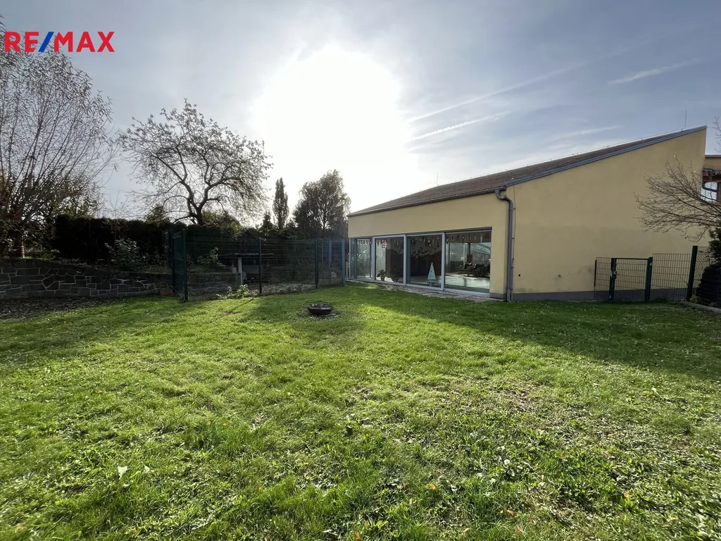 Za domem se nachází adekvátní zahrada, která je ideálním místem pro trávení volného času, rodinné oslavy nebo relaxaci. Zahrada je přístupná nejen z bazénu, ale i z dalších částí domu, čímž se zajišťuje maximální propojení interiéru a exteriéru. Tento prostor nabízí dostatek soukromí i prostoru pro realizaci zahradních projektů, dětských her nebo klidného odpočinku.