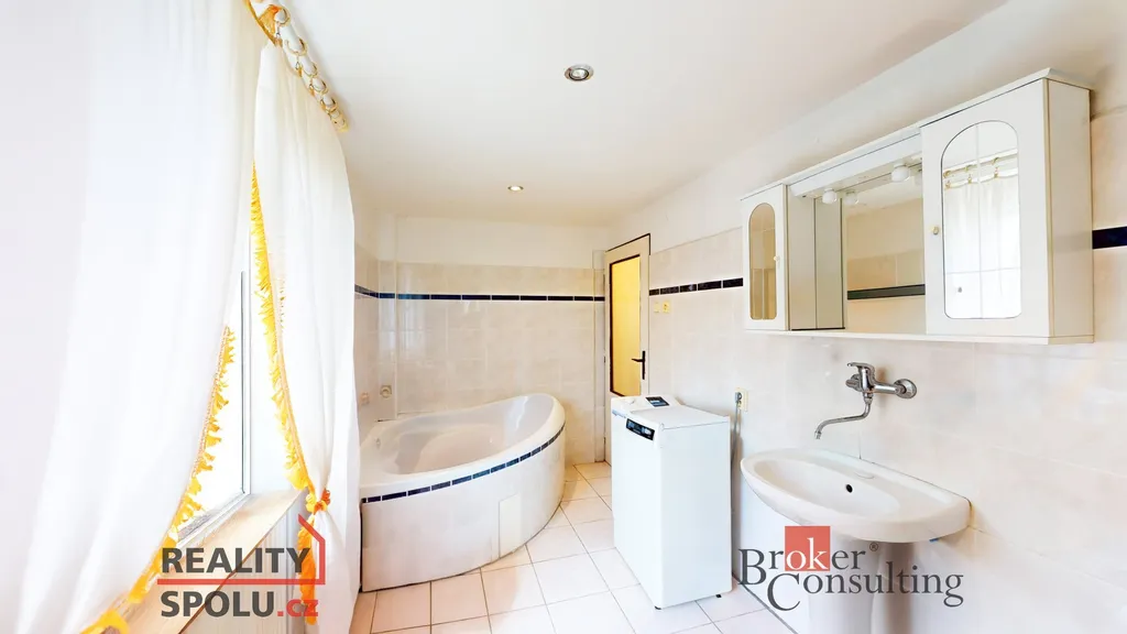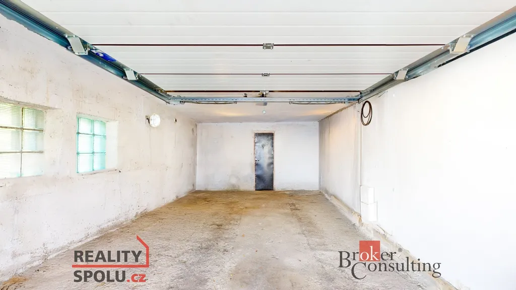 Velkou výhodou je i garáž s roletovými vraty přístupná přímo z ulice, na kterou navazuje menší dílna a je možné projít skrz ně až na zahradu a ke vchodu do domu. Zároveň je dům částečně podsklepen a sklepní prostory je možné využít na uskladnění potravin či sportovního vybavení.