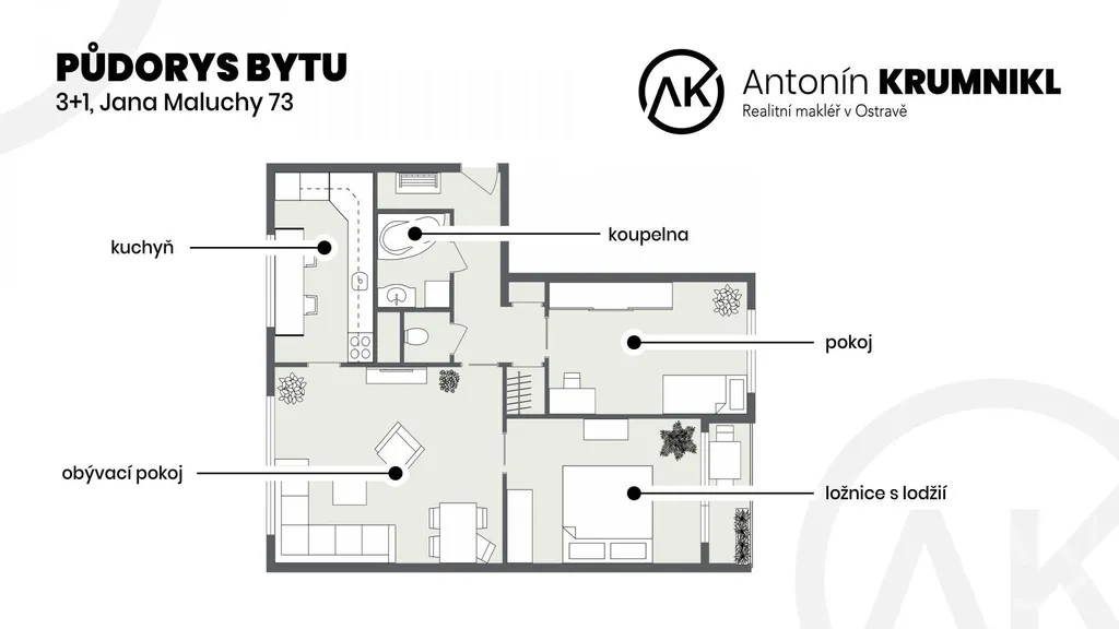Byt má zděné a rozšířené bytové jádro, novější kuchyni a sympatickou dispozici s jedním hlavním a dvěma neprůchozími pokoji. Výhodou je lodžie a pokud máte malé děti, tak naproti bydlí moji super kamarádi se skvělými dětmi. Navíc v rohové vaně budou mít malý bazén.
