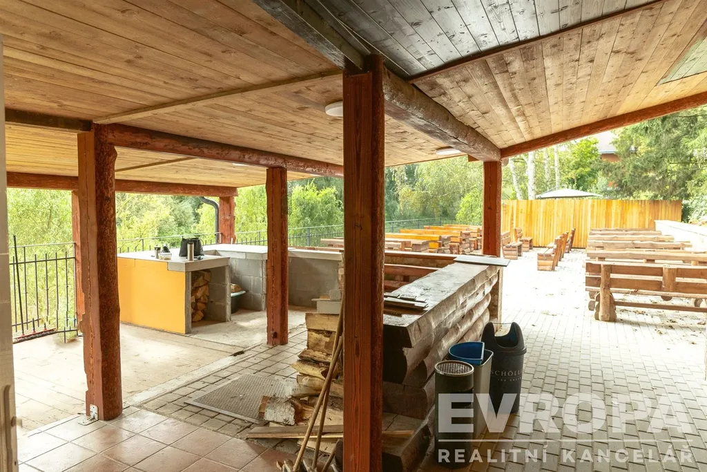 Restaurace nabízí úchvatný panoramatický výhled do okolní krajiny, což dělá tento prostor ještě atraktivnější. Jižní orientace pozemku zajišťuje dostatek slunečního světla během celého dne, což je ideální pro návštěvníky restaurace.