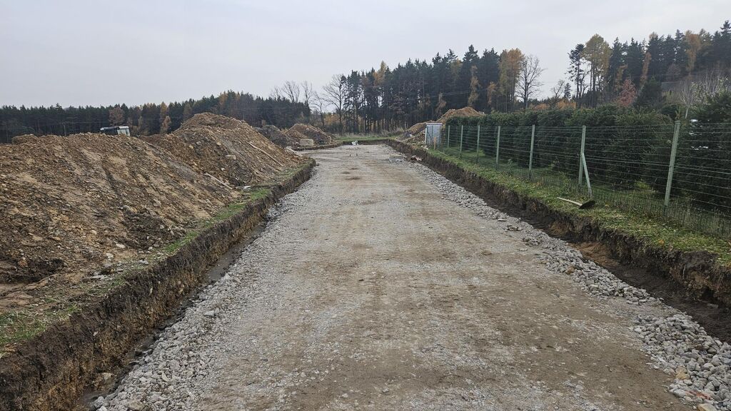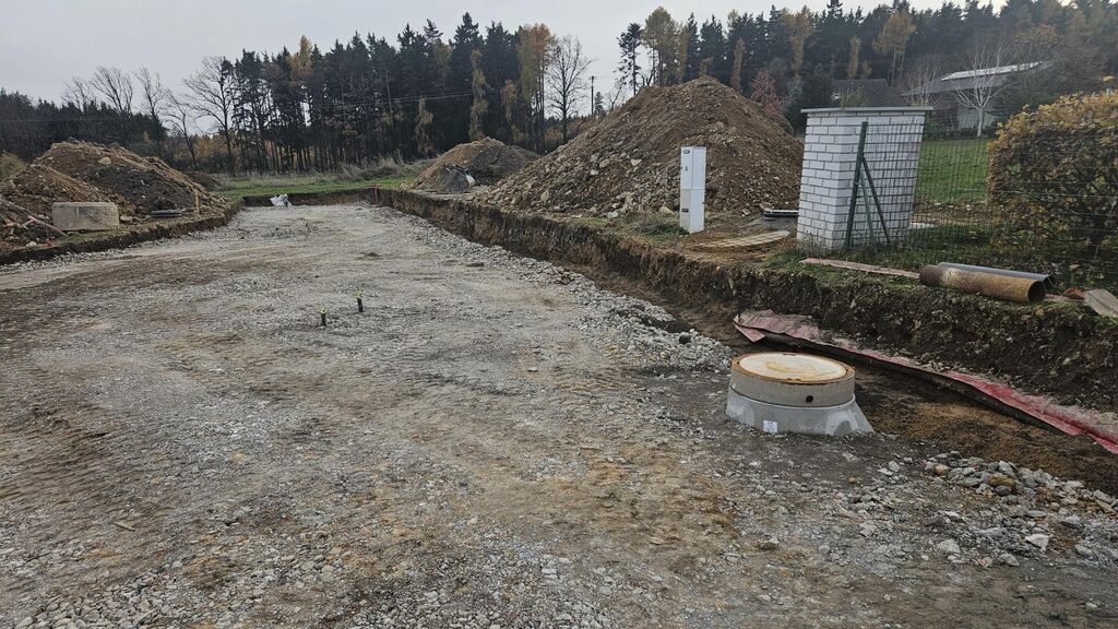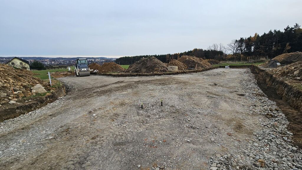 Prodej posledního stavebního pozemku o výměře 1063 m2 s podílem 1/7 na přístupové komunikaci včetně všech inž. sítí ve velice žádané lokalitě Příbram - Orlov. U pozemku je již hotové přípojné místo elektřiny, přípojka tlakové kanalizace včetně odpadní nádrže a čerpadla, vodovodní přípojka. Stavba přípojek je již hotová a čeká se na kolaudaci stavby. Ve fotkách jsou starší snímky ze stavby, která už je hotová. Na přístupové cestě se provádí osazení asfaltového povrchu. Vše má být hotové do konce roku 31.12.2025. Prodávající uhradí na svoje náklady vybudování uvedených přípojek a asfaltové cesty. Cena vybudování přípojek a cesty je již obsažena v ceně každého pozemku. Kupující již nic nepřiplácí na přípojky, akorát si zajistí elektroměrovou část el. přípojky, revizi a osazení elektroměru. Pozemky jsou na krásném místě 300 m od lesa. Ideální pro bydlení - příroda za domem a do města Příbram jede MHD a na Prahu přímé autobusové spojení /pid /. Praha vzdálená 60 km po dálnici D4 - cca 40 min. Orlov je část Příbrami, což je okresní město s veškerou infrastrukturou. Cca 300 m za domem začíná les, který přechází v souvislý pás Brdských lesů a na části je CHKO. Krásné a klidné bydlení. Na pozemky je zpracována architektonická studie Karnet architekti. Možnost požádat o stavební povolení po vyhotovení stavební dokumentace na dům podle vlastního uvážení. Na požádání nebo při prohlídce pozemku možnost do studie nahlédnout. Architekti navrhli typ zástavby - obytné přízemí a podkroví. Není nutné dodržet typ domu ze studie. Cena pozemku včetně přípojek a cesty je 4.700.000,-Kč. Podrobné informace v RK.
