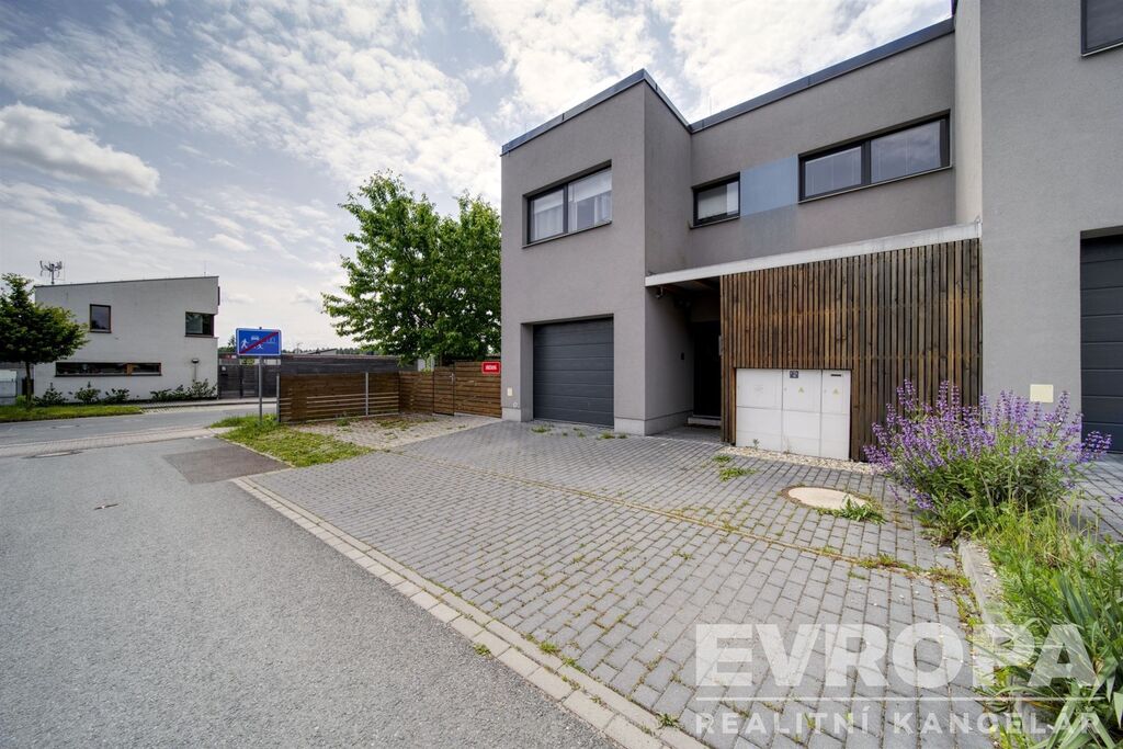 K domu náleží čtyři venkovní parkovací stání na vlastním pozemku přímo před domem. Dvě z nich je možné zastřešit pergolou.