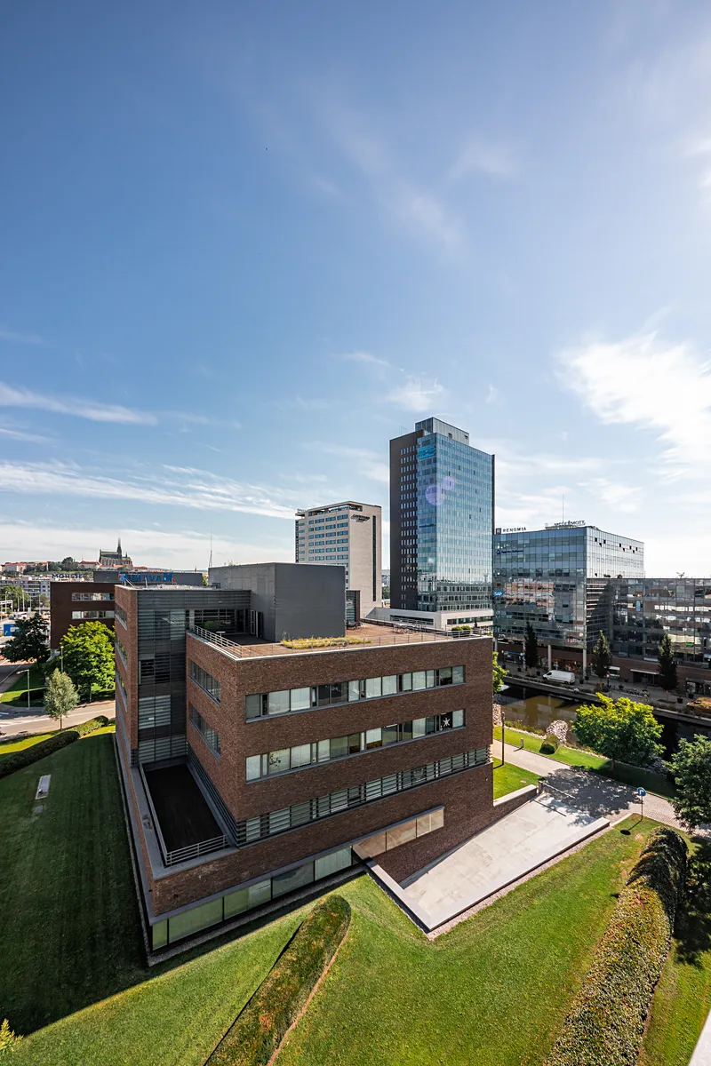 Nabízíme přizpůsobitelné kancelářské prostory, které vyhoví vašim specifickým požadavkům. Kanceláře se nachází v 1.NP (přízemí) Villy J a mají výměru 304 m2. Komplexní služby v areálu: od kaváren a restaurací až po fitness centrum a zelené plochy. Dostupnost jen pár minut od historického centra pěšky, na kole, autem nebo veřejnou dopravou, k dispozici je program bezplatného sdílení kol. Budova má certifikaci BREEAM na úrovni Very Good.