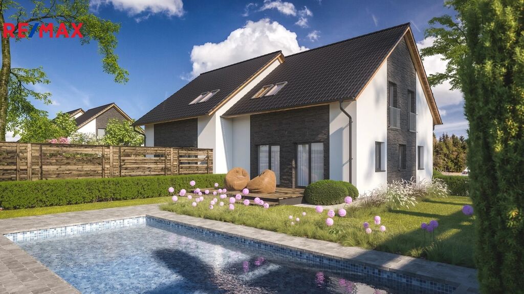Dům bude připojen na obecní vodovod, kanalizaci, elektřinu. Vyobrazené vizualizace interiéru a zahradní úpravy nejsou zahrnuty v ceně.