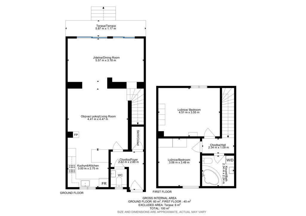 V patře se nachází hlavní ložnice s manželskou postelí a vestavěnými skříněmi. Druhý pokoj může sloužit jako dětský pokoj nebo pracovna. Koupelna je vybavena rohovou vanou, umyvadlem, přípojkou na pračku, sušičkou a druhou toaletou.