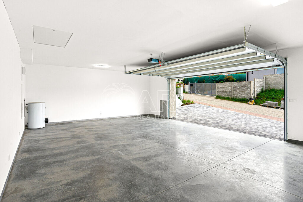 ✅ Garáž s leštěným betonem a širokými vraty Hörmann (5 m) – prostor i pro větší auto, dílnu nebo kreativní zónu
