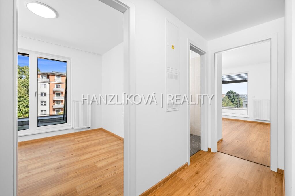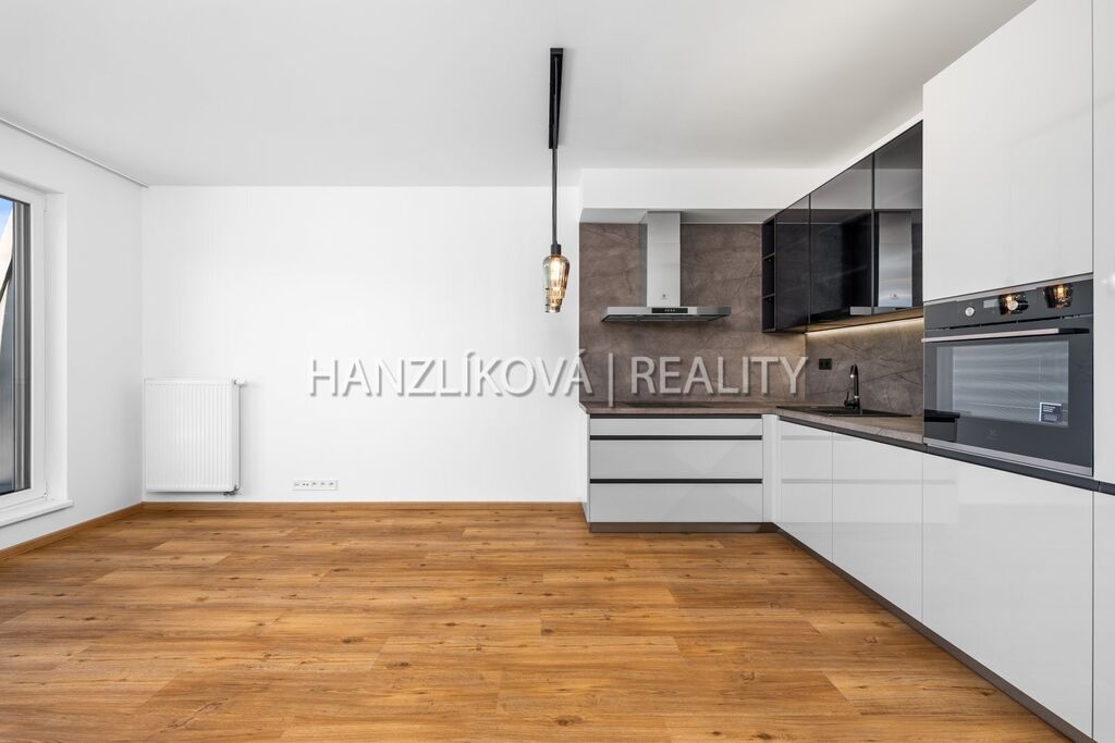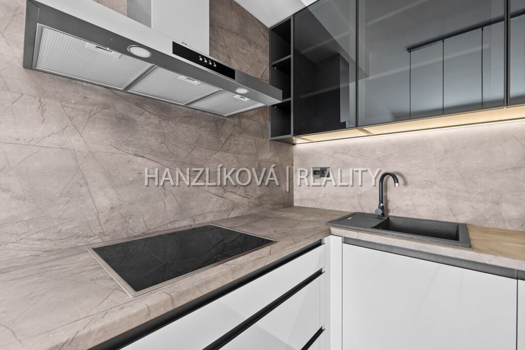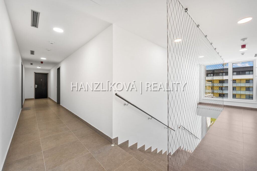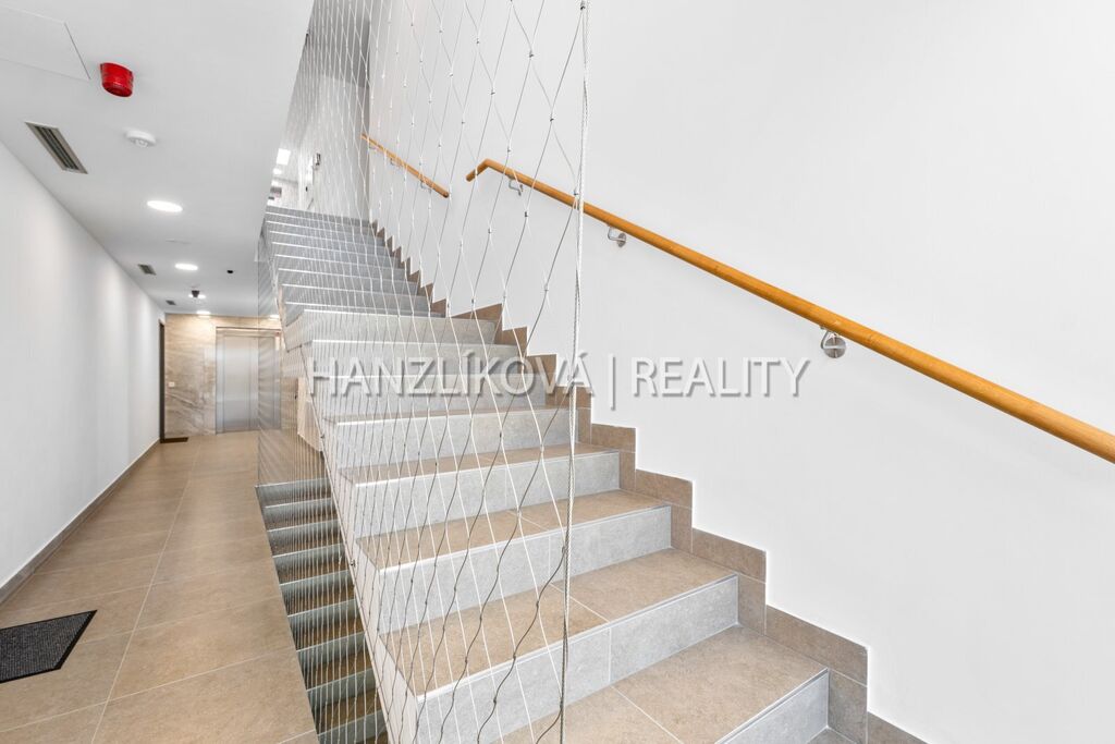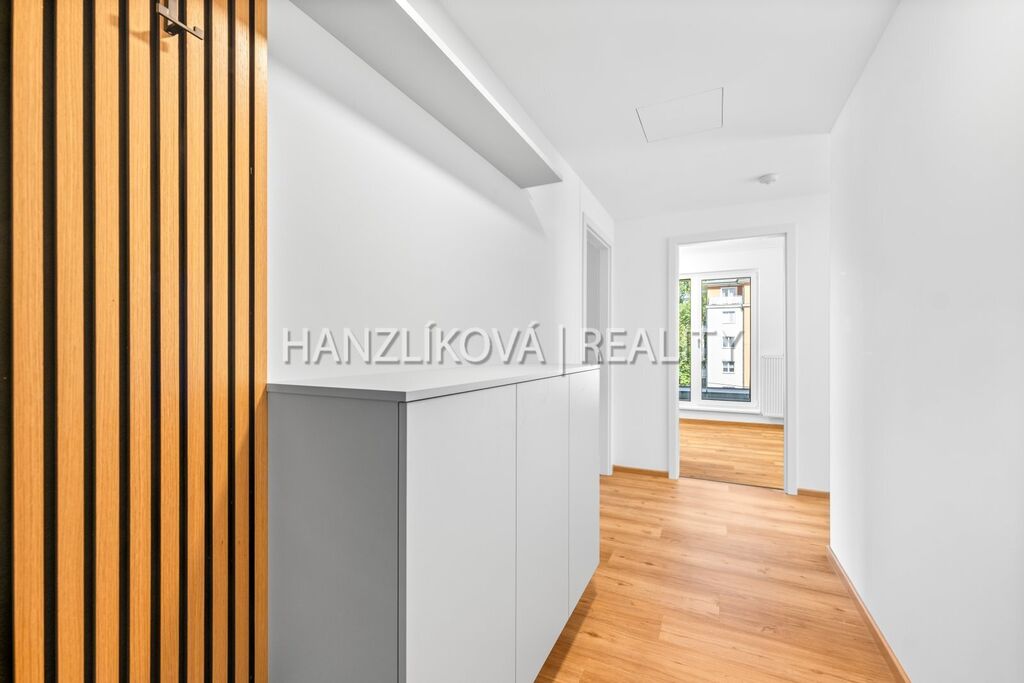 Byt je částečně vybaven – kuchyňská linka na míru od kuchyňského studia Hanák včetně značkových elektrospotřebičů, barový pult, osvětlení ve všech místnostech, klimatizační jednotky, předsíňová stěna, předokenní venkovní žaluzie.