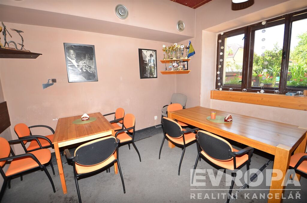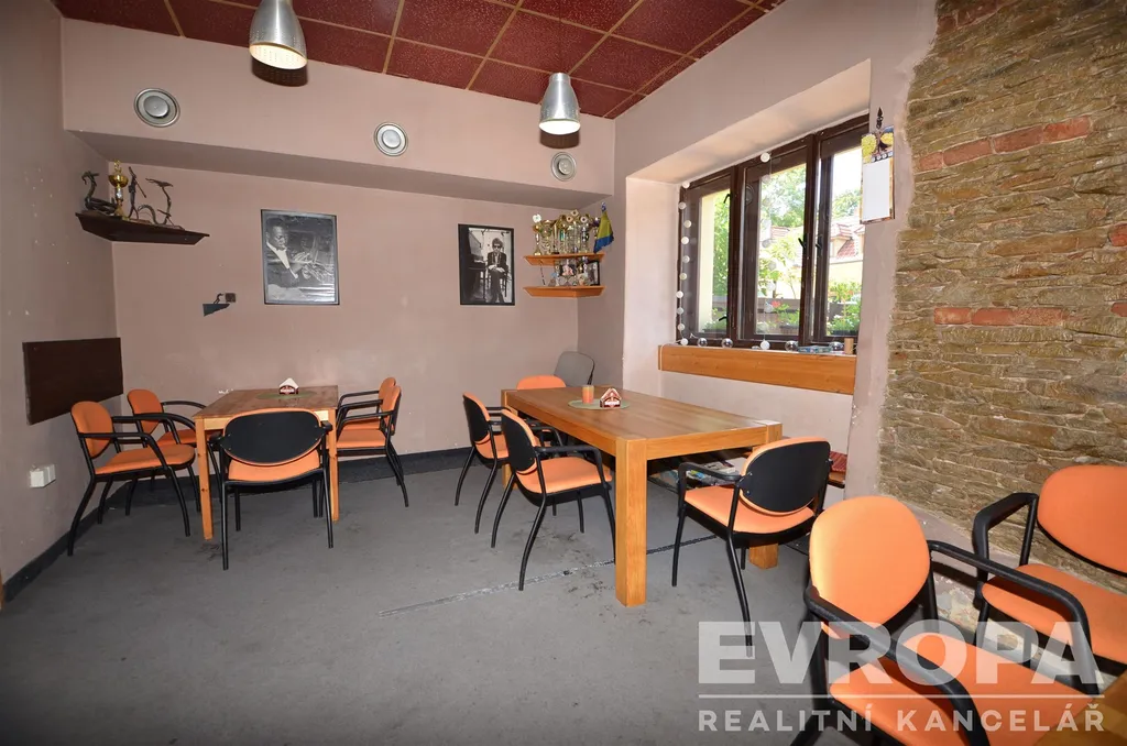 V přízemí se nachází zkolaudovaný restaurační provoz, s veškerým zázemím (bar, kuchyně, toalety), prostor je momentálně pronajatý a nájemce využívá také prostory v suterénu a venkovní zahrádku.