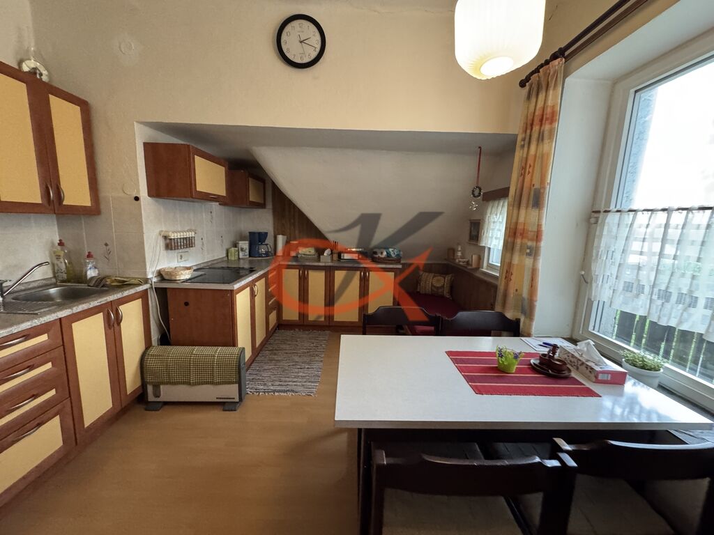 Dispozičně je dům rozdělen na dvě části: Přízemí zahrnuje předsíň, kuchyni se spižírnou, obývací pokoj s krbovými kamny, ložnici, koupelnu a WC, a také vstup na zahradu a do sklepa. V prvním patře se nachází ložnice, kuchyň, spíž, prostorný obývací pokoj, podkrovní pokoj, koupelna, WC a vstup na balkon. Díky odděleným bytovým jednotkám je dům ideální pro vícegenerační bydlení, popřípadě pro kombinaci bydlení s podnikáním nebo jako penzion či rekreační dům k pronájmu.