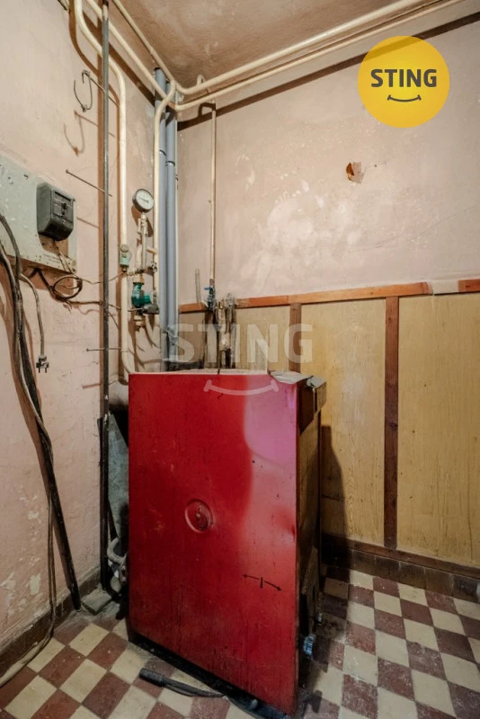 K bytu náleží také prostorný sklep, který poskytne dostatek úložného prostoru, sklad paliva či domácí dílnu.