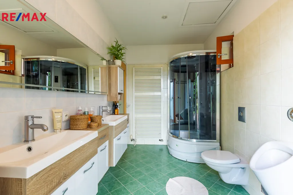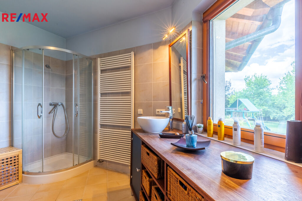 • Dvě koupelny, dvě šatny, komora, prádelna, sklad