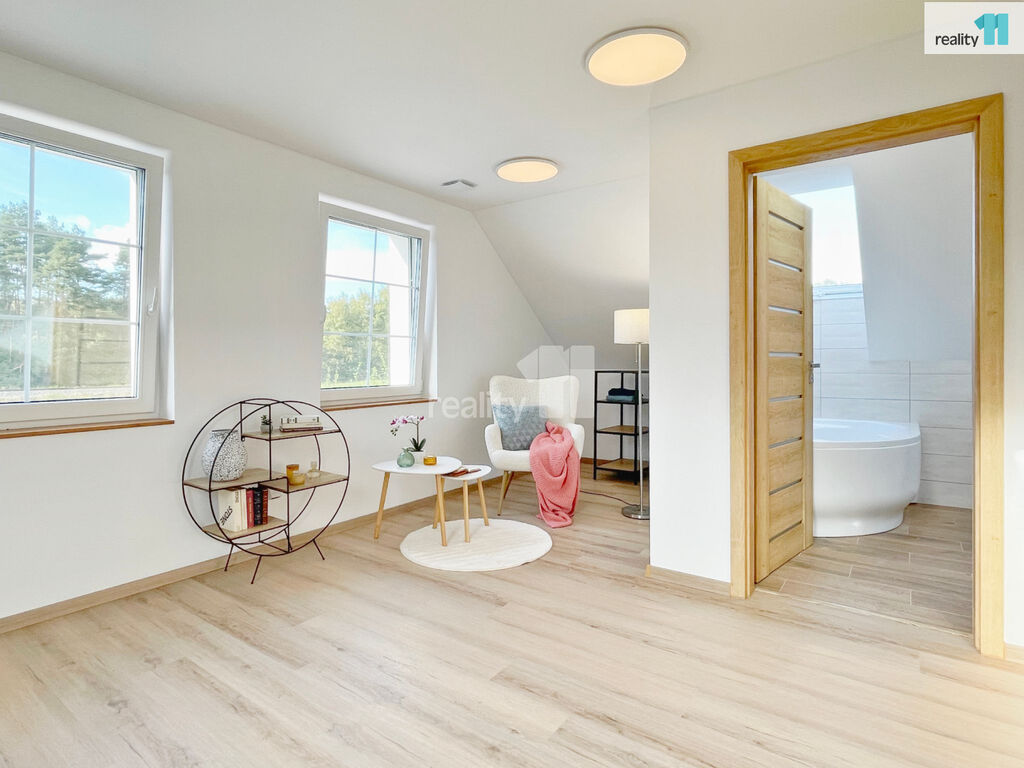 V domě jsou čtyři neprůchozí pokoje, jejichž dispozice se pohodlně přizpůsobí jak dětským snům o vlastním útočišti, tak pracovním či relaxačním potřebám rodičů. Ve dvou koupelnách najdete vanu i sprchový kout – všichni členové rodiny mají svůj komfort zaručen.