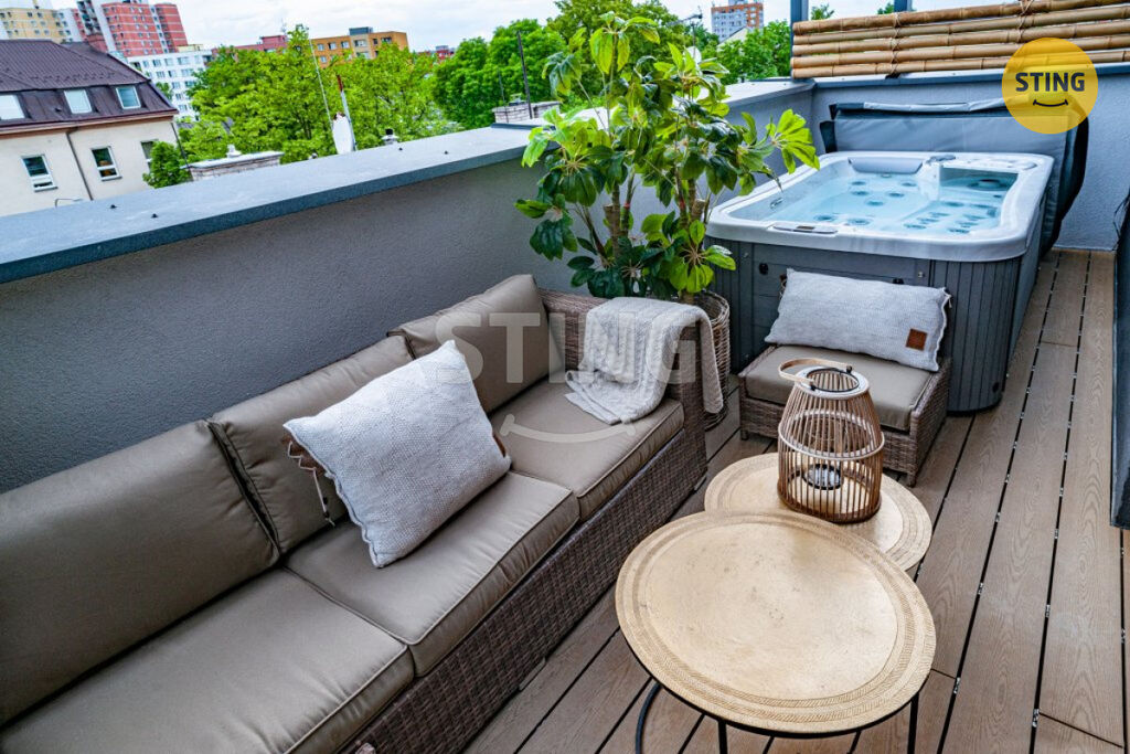 Nadčasový střešní loft s vířivkou a dechberoucí terasou v srdci Ostravy.