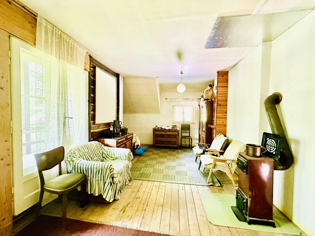 V prvním patře navazuje na pokoj veranda. Topení je zajištěno několika kamny na tuhá paliva v celém domě.
