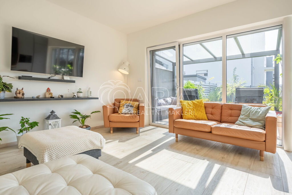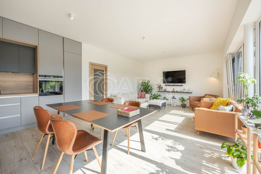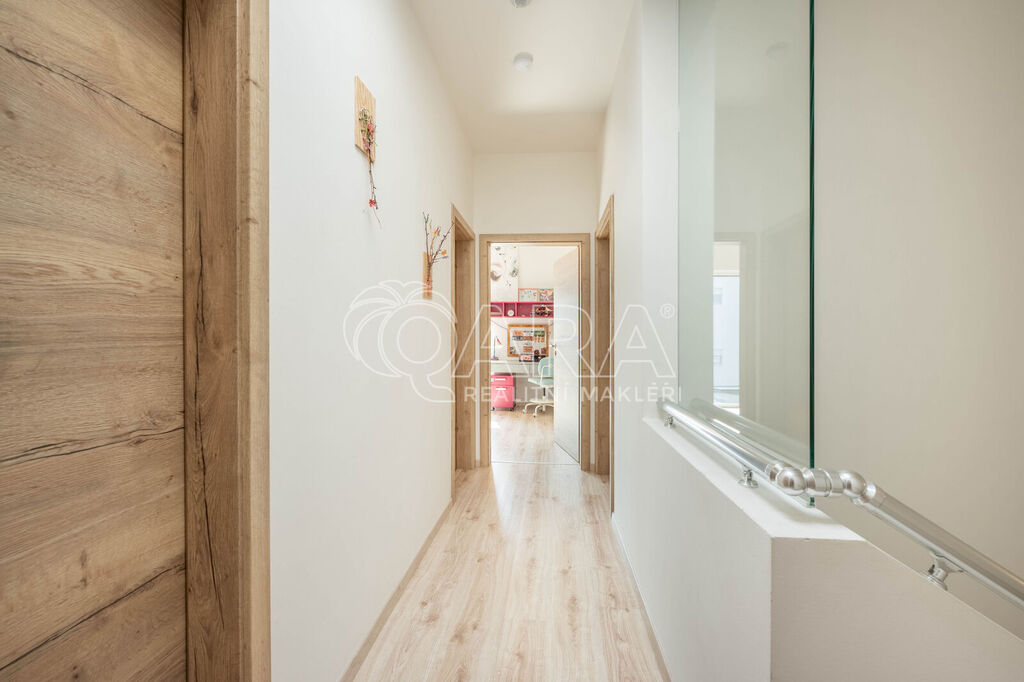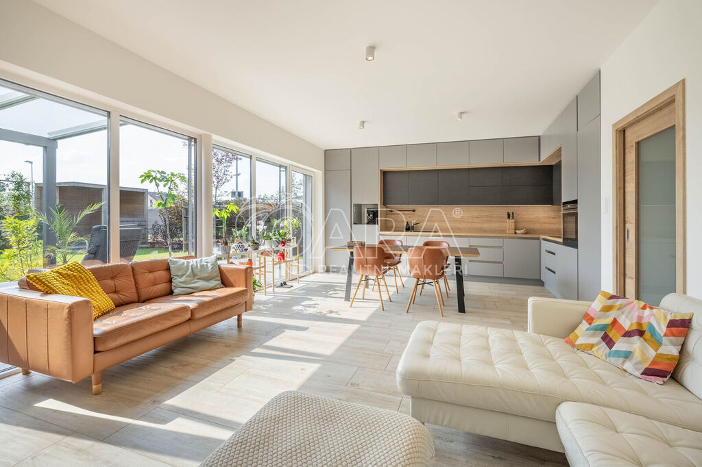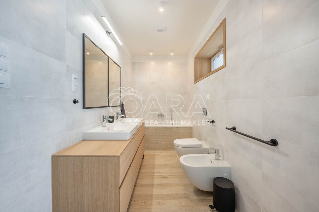 Celou nemovitostí se prolíná čistý design - dřevěné podlahy a kvalitní povrchové materiály, vestavěné skříně a nábytek na míru, kuchyně disponuje kvalitními spotřebiči, koupelny s toaletou jsou vybaveny kvalitní sanitou a příjemné klima uvnitř domu po celý rok vám zajistí tepelné čerpadlo v kombinaci s předokeními žaluziemi. Díky zateplení, oknům s trojsklem a tepelnému čerpadlu je nemovitost energeticky efektivní - nízkonákladová.