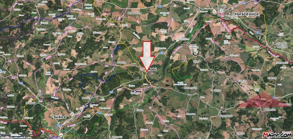 Ojedinělá možnost koupě krásného stavebního pozemku přímo pod hradem Rabí ve velmi klidné již zastavěné části za odpovídající cenu 2.575 Kč/m2 v této turisticky zajímavé lokalitě Rabí (515 m.n.m.), kde je veškerá občanská vybavenost (obchod, obecní úřad s poštou, oblíbený zatopený vápencový lom na koupání, restaurace u „Vystřeleného očka“, sportovní a dětské hřiště, fotbalové hřiště, tenisové kurty, hrad Rabí, řeka Otava, BUS a vlak. spojení do Sušice 10 km a Horažďovic 7 km) a turistické vyžití s historickou atmosférou. Nutno vidět klidnou lokalitu, výhled na hrad a ideální velikost pozemku.