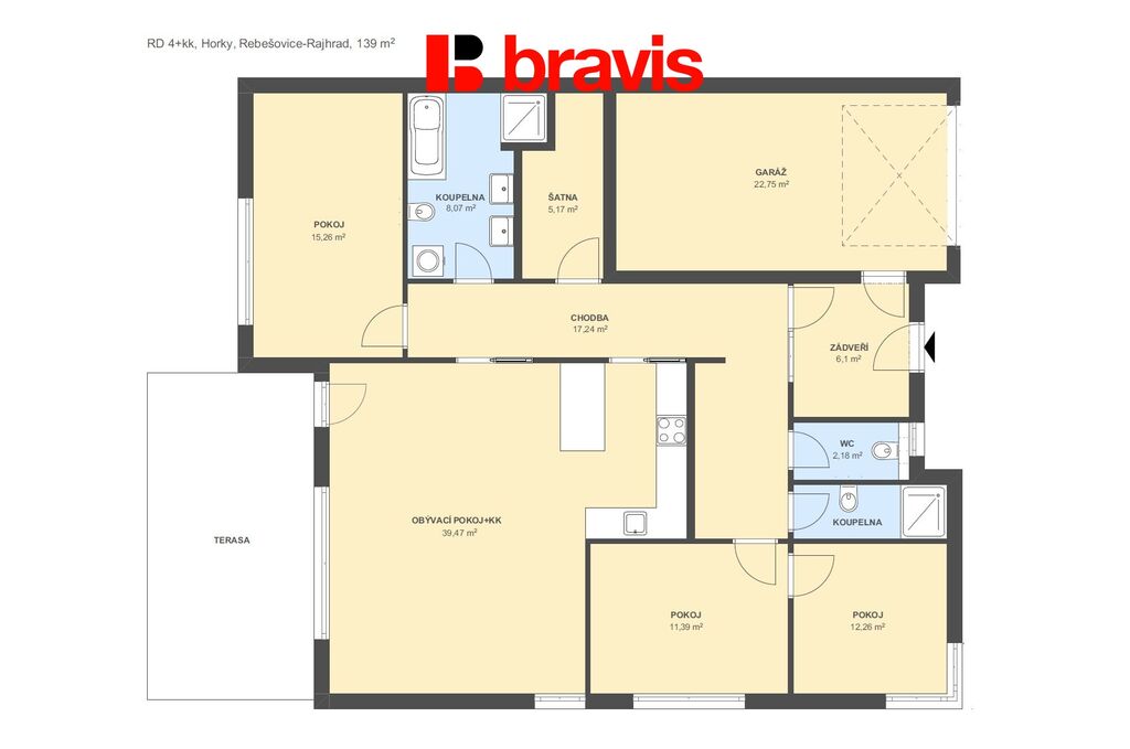 Tento přízemní dům byl navržen s ohledem na maximální komfort a funkčnost. Nabízí přehledně uspořádané místnosti, které poskytují dostatek prostoru pro každého člena rodiny.