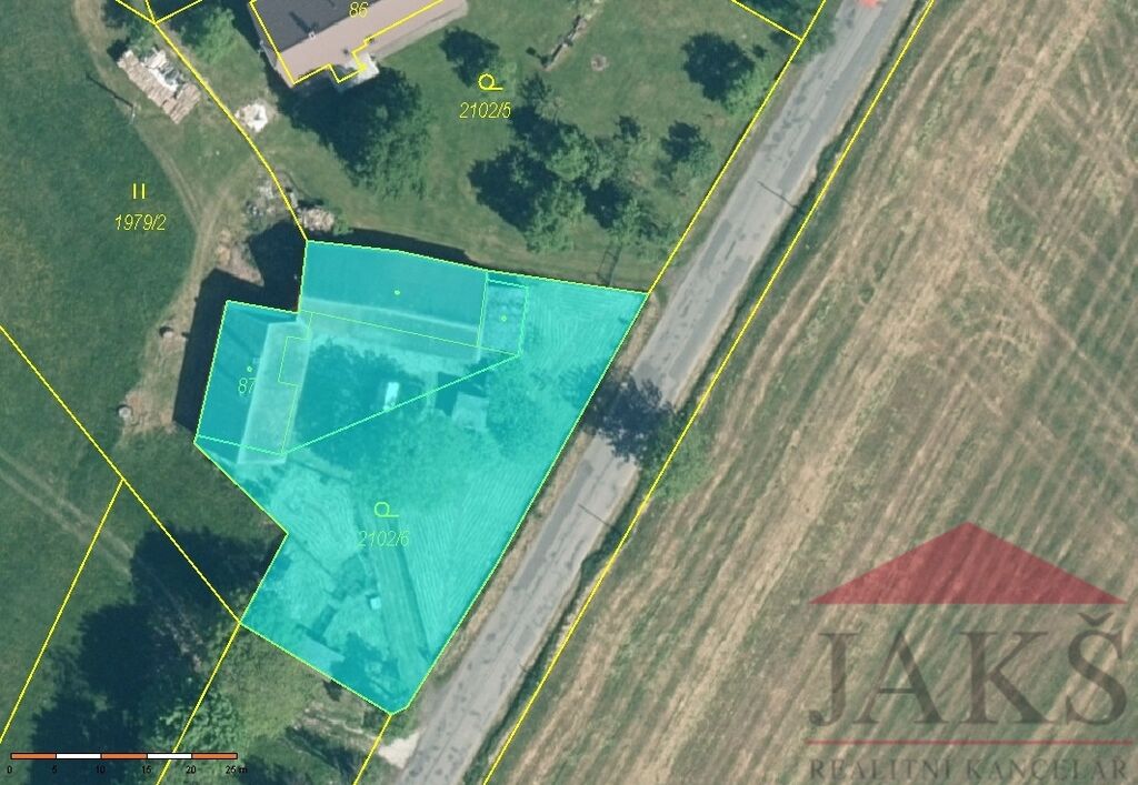 Zahrada: 982 m2; Pěkná, slunná, rovinatá, oplocená, udržovaná a sekaná zahrada s plodícími ovocnými stromy (jabloně, ořech, višeň, švestka) keři (maliny) a vjezdem.