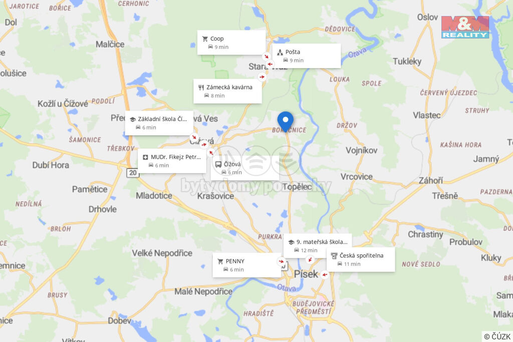 Nabízíme udržovaný stavební pozemek 938 m² v malebné části Čížová–Borečnice. Územní plán umožňuje výstavbu venkovského RD či rekreačního domu. Inženýrské sítě: obecní vodovod na hranici (napojení schváleno starostou), elektřina v řešení – umístění sloupku se finalizuje. Odpady: vhodná vlastní ČOV; obecní kanalizace je zakreslena v územním plánu. Příjezdová cesta je povolena, k dispozici je hotový projekt schválený dopravním inspektorátem. Parcela nabízí dost místa na dům, zahradu i klidnou relaxaci – skvělý prostor pro rodinu, hobby i nenáročnou údržbu. Minutu chůze od pozemku je zastávka, kam zajíždí školní autobus. Lokalita zaujme naprostým klidem, minimálním provozem a okolní přírodou; ideální pro ty, kdo chtějí žít pomalu a kvalitně. Písek s plnou občanskou vybaveností je 5 km/cca 5 min autem, Praha pohodlně do necelé hodiny. Online nákupy z domova – do lokality zavážejí rozvozové služby potravin. Skvělá investice i místo pro život. Zavolejte, rádi zajistíme prohlídku.