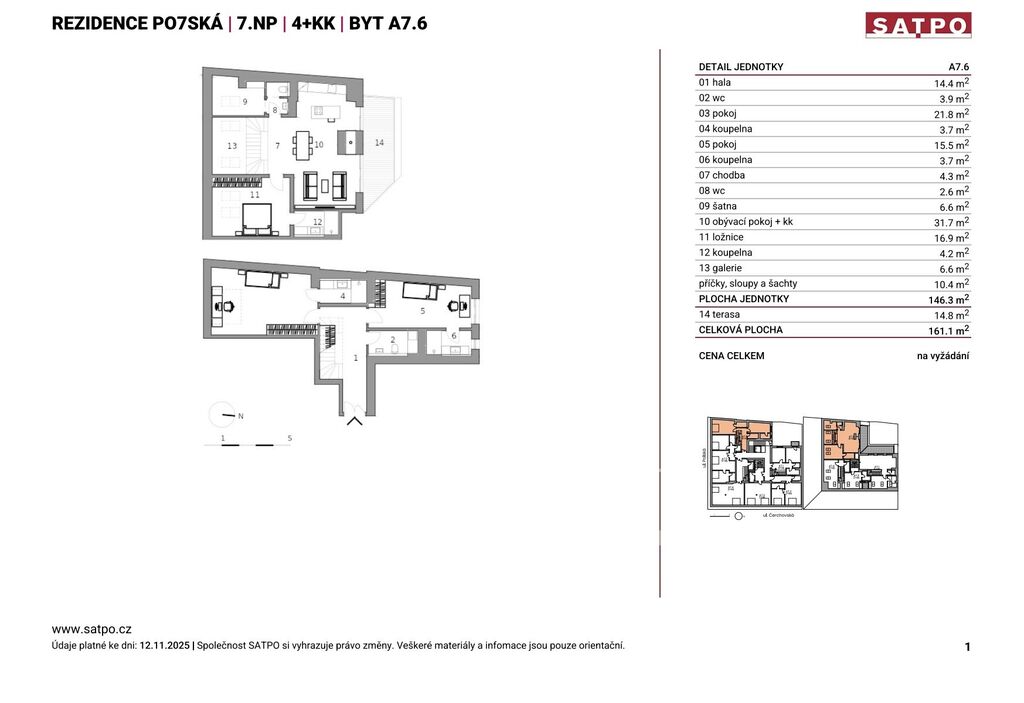 Představujeme vám prémiový mezonetový byt 4+kk s terasou, galerií, šatnou a třemi koupelnami. Prostor, soukromí, elegance. Největší byt v posledních dvou patrech noblesního rohového domu s vnitřní plochou 146,3 m2 vám nabídne výjimečné rodinné zázemí na adrese, která má styl, atmosféru i duši.