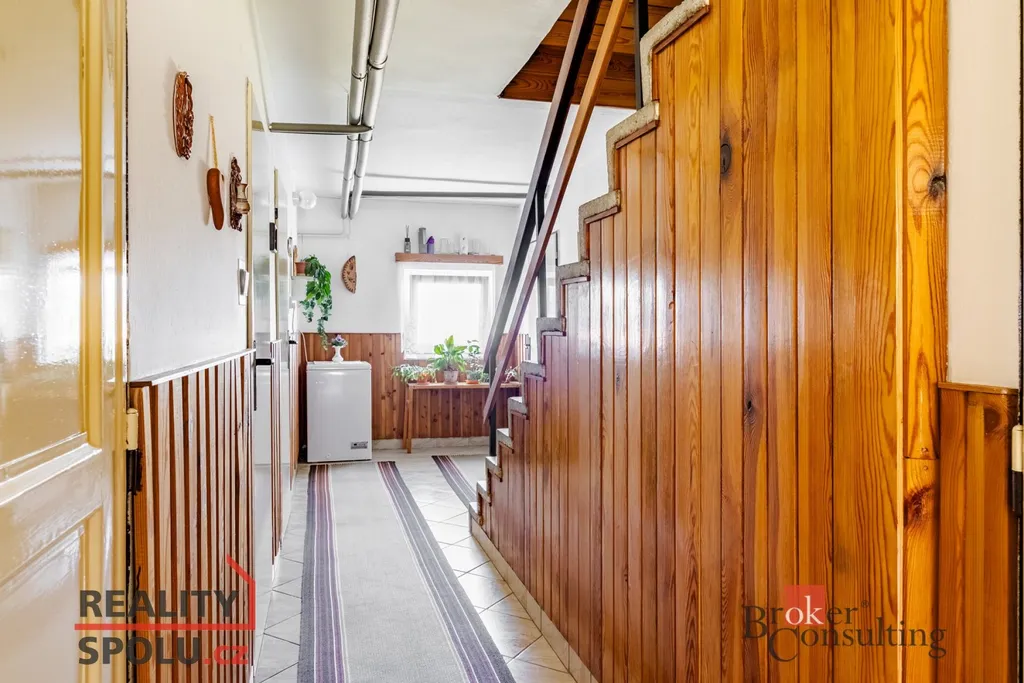Dispozice domu v prvním podlaží jsou 3 technické místnosti, koupelna a toaleta zvlášť, součástí domu je garáž. První patro má dispozici 3+1, druhé patro 2+1 a půdní prostor.