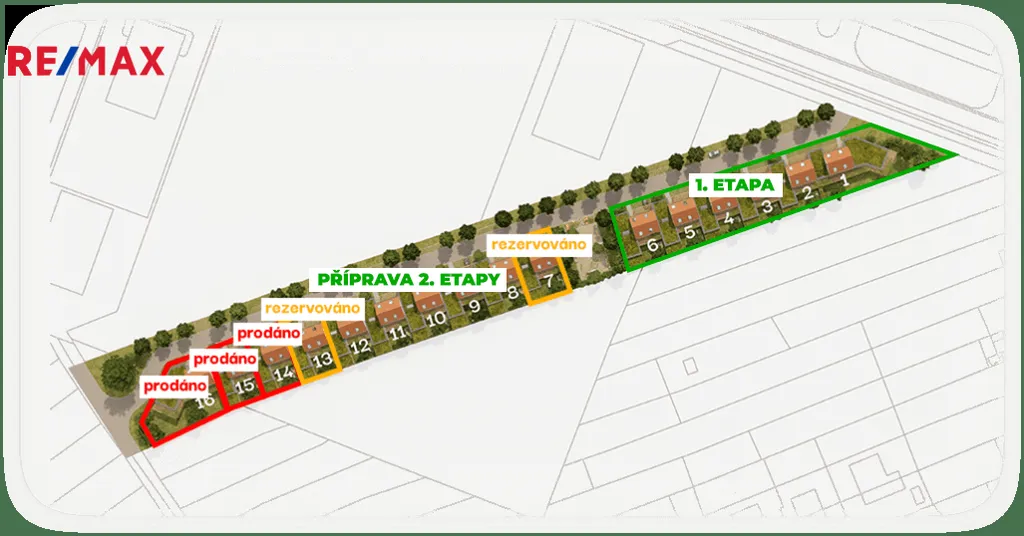 Výstavba byla zahájena 3/2024. Plánované dokončení staveb v rámci první etapy šesti domů je na konci roku 2026. V rámci projektu pro vás připravujeme a rádi vám nabídneme zvýhodněné úvěrování, které je připravené tomuto projektu na míru naším finančním poradcem po konzultaci a upřesnění vstupních informací s jednotlivými zájemci o koupi.