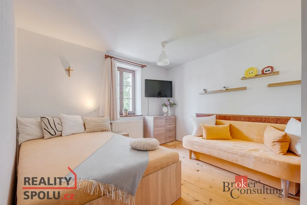 Celá nemovitost se skládá z volarské roubenky alpského typu (v perfektním stavu!) a pak ze zděné dvoupodlažní budovy z počátku 20. století. Dům je zateplený, po relativně nedávné rekonstrukci, pečlivě udržovaný a v dobrém stavu. Roubenka má dispozici 2kk, dolní bytová jednotka zděného domu 3+1 a horní 4+1. Dům disponuje také řadou dalších technických místností jako garáž, sklep, kotelna, velká dílna nebo prádelna. Zvlášť atraktivní je velkorysý půdní prostor, který nabízí možnost 4. apartmánu s vysokými stropy a krásnými výhledy do okolí.