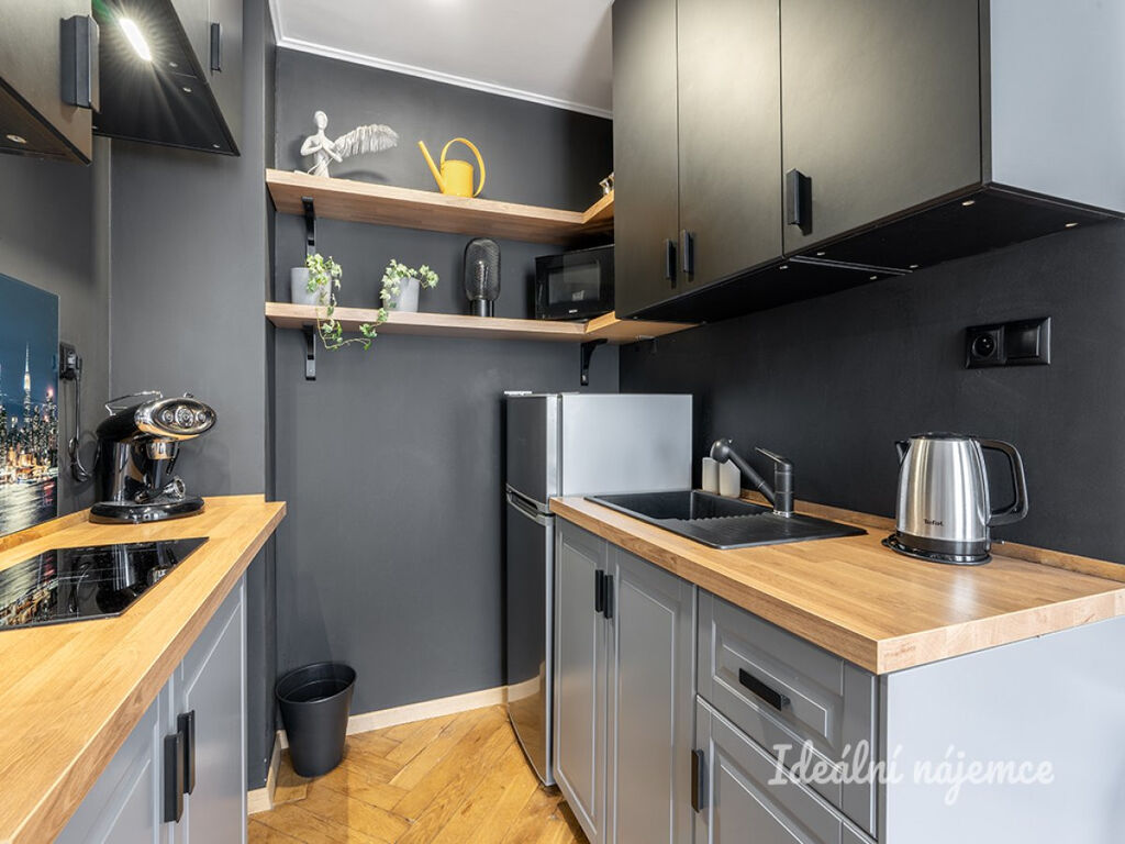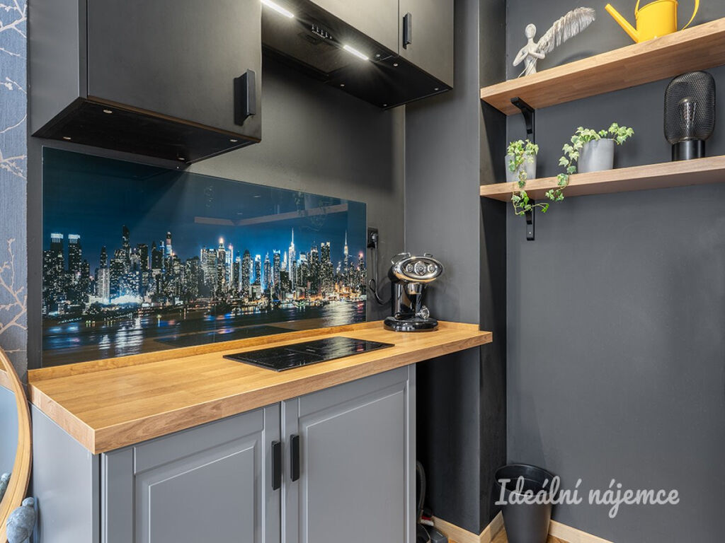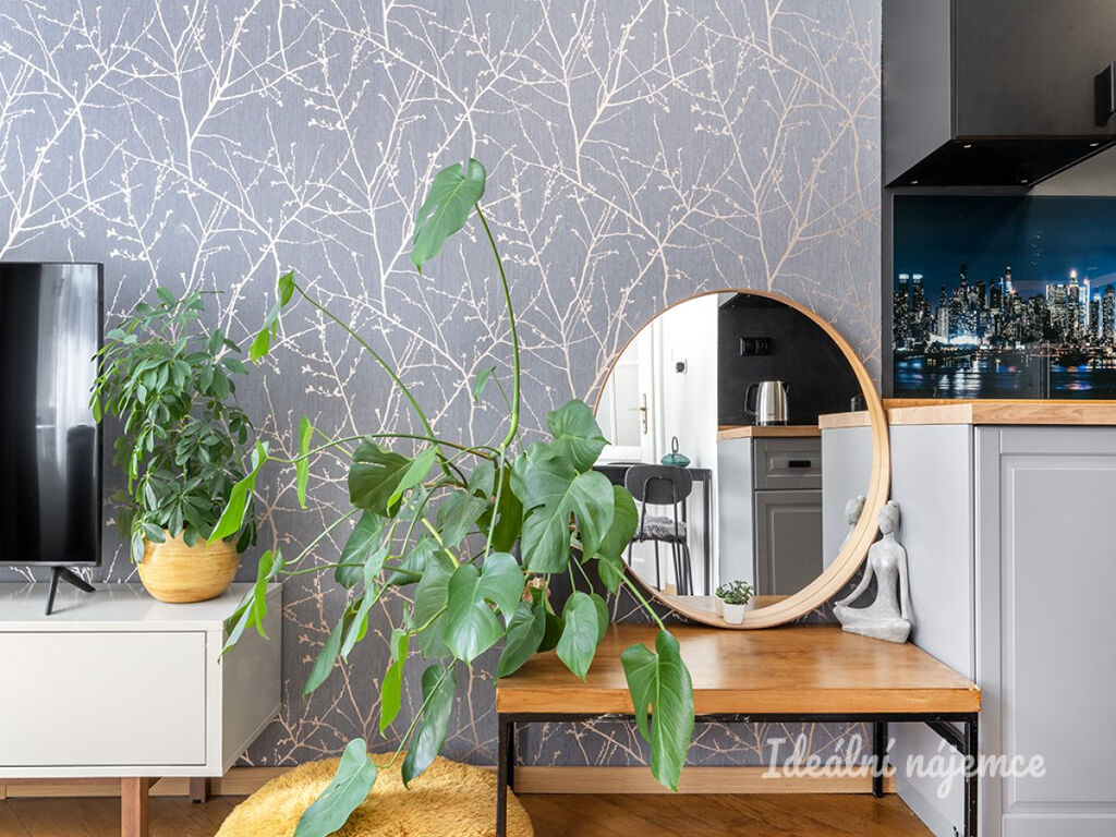 Byt je plně vybavený a nabízí pohodlí moderního bydlení. Kuchyně je vybavena lednicí, indukční varnou deskou, mikrovlnnou troubou a digestoří. V obývacím prostoru najdete pohodlný gauč, jídelní stůl se židlemi a chytrou televizi. Ložnice má pohodlnou postel a šatní skříň. V koupelně najdeme sprchový kout a toaletu. Byt nabízí dostatek úložného prostoru, moderní design a výhodnou lokalitu.