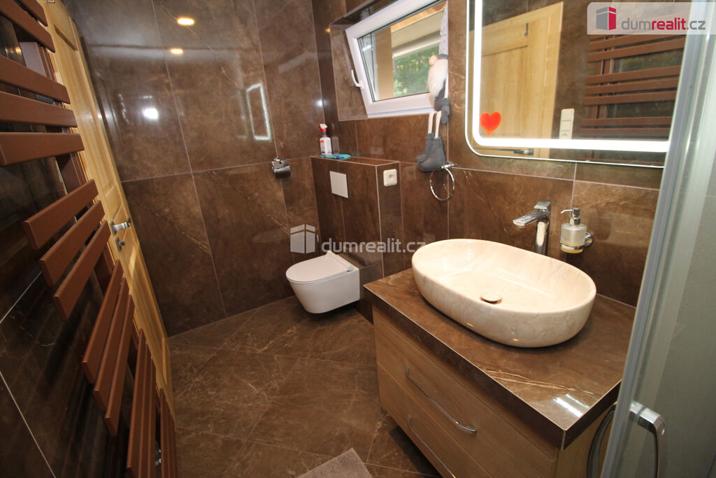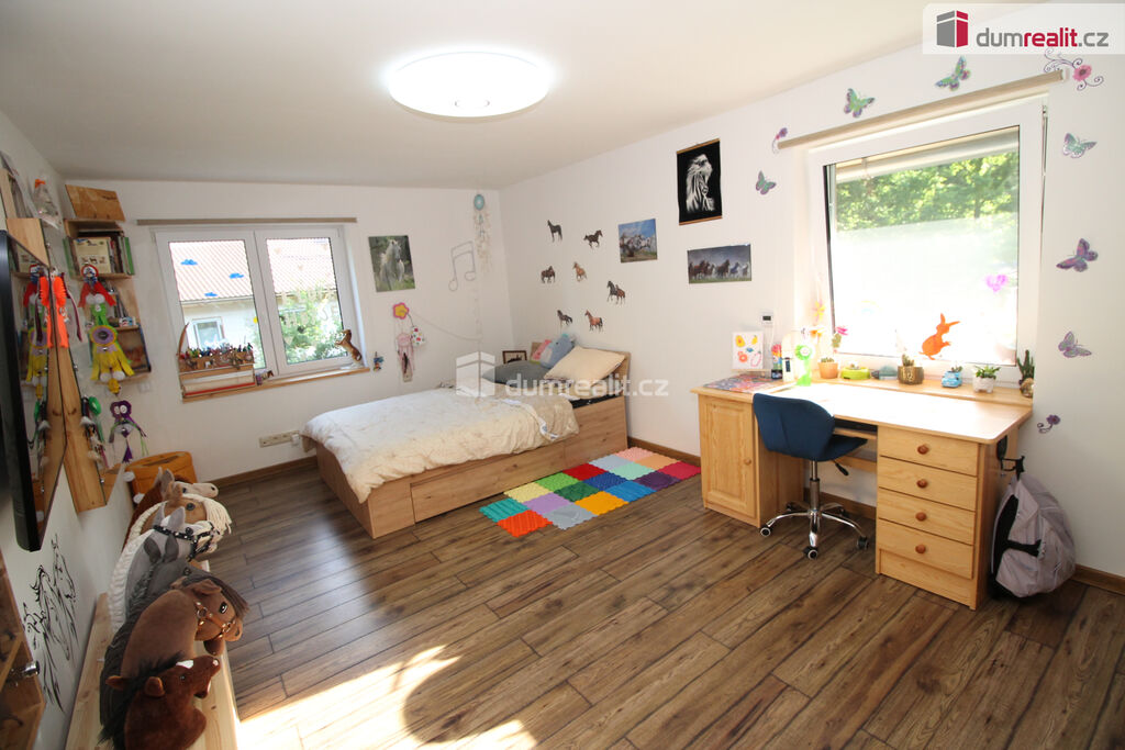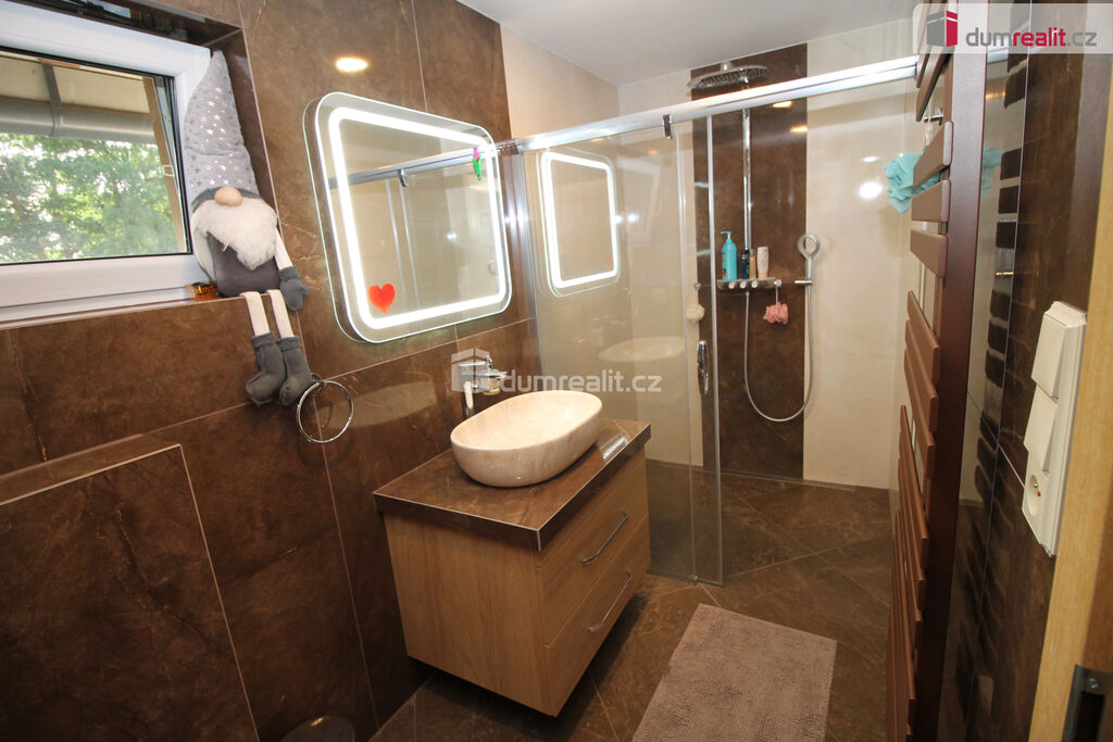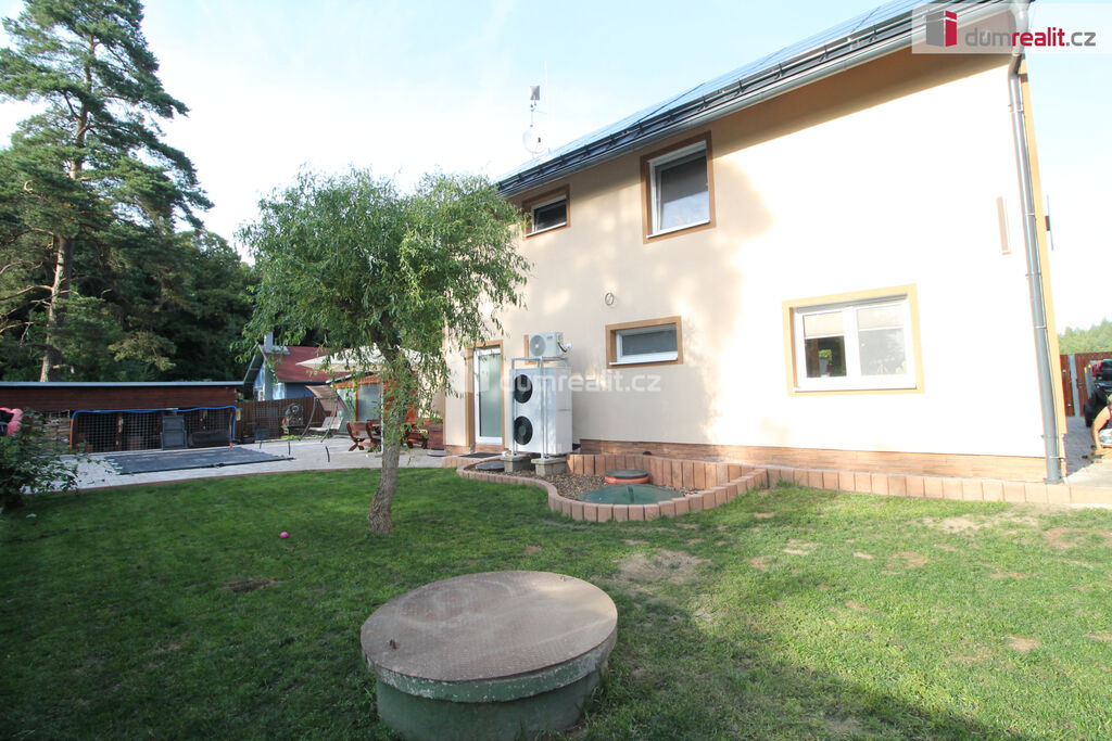 Dumrealit.cz Vám zprostředkuje koupi mimořádné a vyjímečné nemovitosti, rodinného domu po kompletní rekonstrukci o dispozici 6+1 v Děpoltovicích nedaleko Karlových Varů. Dům obklopuje upravená zahrada o celkové rozloze 629 m² (z čehož 167 m² tvoří zastavěná plocha domu), na které se nachází bazén, terasa, přístavky s úložným prostorem a příslušné technologie. Majitelé během let dům postupně zvelebovali, rekonstrukce zahrnuje kompletně novou elektroinstalaci, vodoinstalaci, štuky, omítky, zdi, koupelny, kuchyni, okna, střechu, krov, podlahy atd.. Okna jsou kvalitní trojskla, ve všech jsou instalované předokenní bezpečnostní rolety a sítě proti hmyzu. Kompletně v celém domě (včetně garáže) je podlahové vytápění, vytápění zajišťuje tepelné čerpadlo a solární panely na střeše s tím, že přebytky se prodávající do sítě což činí dům téměř beznákladový (náklady cca 20.000,-Kč ročně). Pro ohřev teplé vody slouží velkokapacitní nádoba na ohřev teplé vody. Dům je samozřejmě zateplený (20 cm vata na fasádě, dále pod střechu a na podlaze půdy je foukaná izolace), kolem domu je hydroizolace. V obývacím pokoji/zimní zahradě je navíc příprava na krbová kamna. Voda je ze studny (9 m), dále z vrtu (18 m), dále si majitel nechá vozit cisternu s pitnou vodou, která se přečerpá do nádrže zabudované na zahradě. Zdroje vody se dají libovolně přepínat. Odpad je do ČOV (čističky odpadních vod) a dále se již čistá voda odvádí z domu skrze vsak. V celém domě je klimatizace a ozónová čistička vzduchu, která pohlcuje jak prach, tak zvířecí chlupy a vypouští kladné ionty. Všechen nábytek v domě je na míru od truhláře (většina zůstává a je součástí ceny). V přízemí je obývací pokoj, herna, kuchyně s jídelním koutem (pod kuchyní je sklep), pracovna, šatna, koupelna s vanou, samostatné WC s umyvadlem, předsíň s vestavěnými skříněmi, chodba se schodištěm a technická místnost s WC. Dále je z chodby přístupná obrovská garáž s umyvadlem, kde také zůstávají prostorné vestavěné skříně a kudy se dá také projít zadem na zahradu. Nad garáží je další půda. K dispozici je nabíječka na elektroauto. Terasa je přístupná jak z obýváku tak z technické místnosti, kde je k dispozici třetí toaleta. V prvním patře jsou 2 dětské pokoje, další koupelna se sprchou a toaletou, rodičovská ložnice se vstupem na horní terasu a vstup na půdu, kde by mohly vzniknout další dva pokoje. V objektu je kamerový systém a dům je napojen na pult bezpečnostní ochrany. Dům se nachází ve velmi hezké lokalitě blízko Děpoltovického rybníku, kde je možné jezdit na koních, je zde restaurace, hotel, hospůdka, pravidelně se pořádají společenské akce (hlavně v létě) avšak je zde klid a příjemná atmosféra. Do pár minut jízdy autem jsou Karlovy Vary, kde je veškerá občanská vybavenost včetně bank, úřadů a restaurací. K dispozici je OC Varyáda (10 km), OC Fontána, KV Aréna. Cena je včetně provize RK. Ev. číslo: 652105.