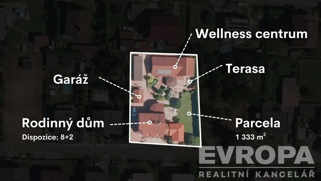 Na pozemku o rozloze 1.333 m² se nachází dům s podlahovou plochou 220 m² a dispozicí 8+2 kuchyně, která nabízí velkorysý prostor pro vícegenerační bydlení i náročný rodinný život. Dům disponuje 3 koupelnami, což zajišťuje maximální komfort a soukromí pro všechny členy domácnosti.