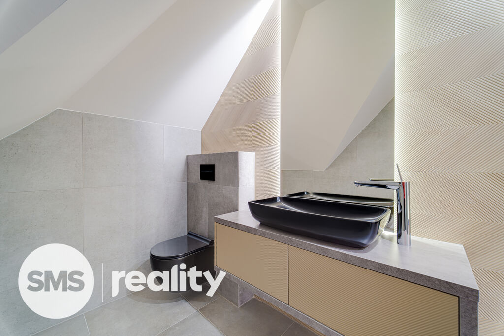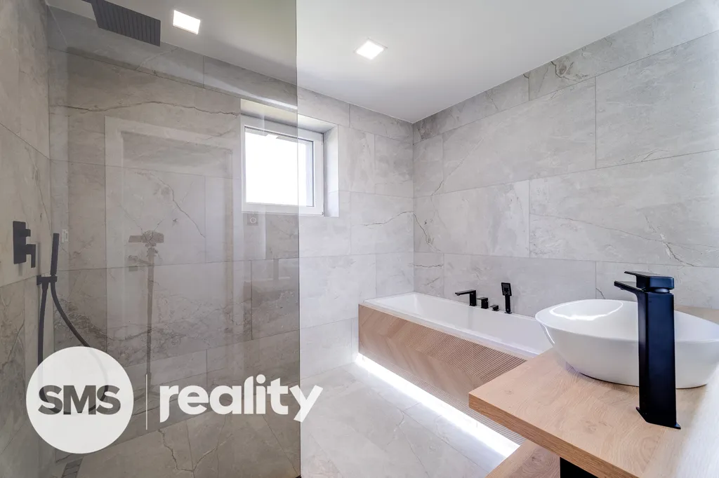 Rekonstrukce byla původně připravována pro vlastní bydlení majitele, proto zde naleznete pouze ty nejkvalitnější materiály a precizní detaily: betonové stěrky, luxusní skleněné zábradlí, kamenické rohy, vestavěné prvky na míru a moderní LED osvětlení.