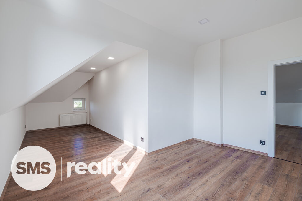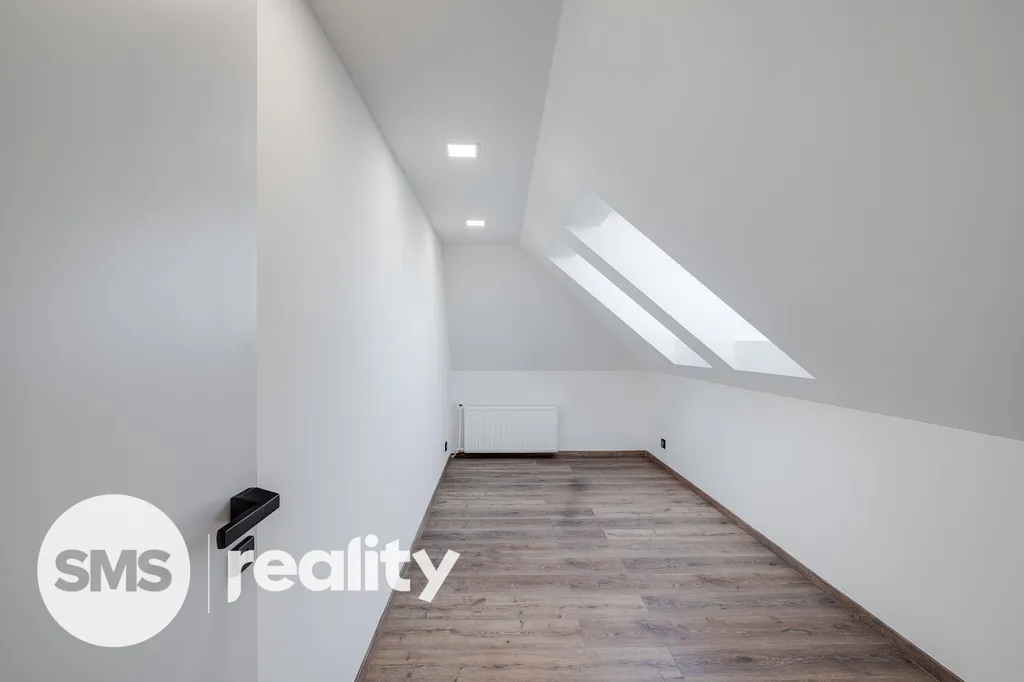 V přízemí vás přivítá reprezentativní vstupní hala, velkorysý obytný prostor s kuchyní, jídelnou a obývacím pokojem, doplněný pracovnou a koupelnou vybavenou vanou i sprchovým koutem. V patře se nacházejí tři samostatné ložnice a druhá koupelna se sprchou. Kuchyňská linka na míru je plně osazena špičkovými spotřebiči Bosch. Koupelny jsou vybaveny elektrickými topnými rohožemi pro maximální komfort.