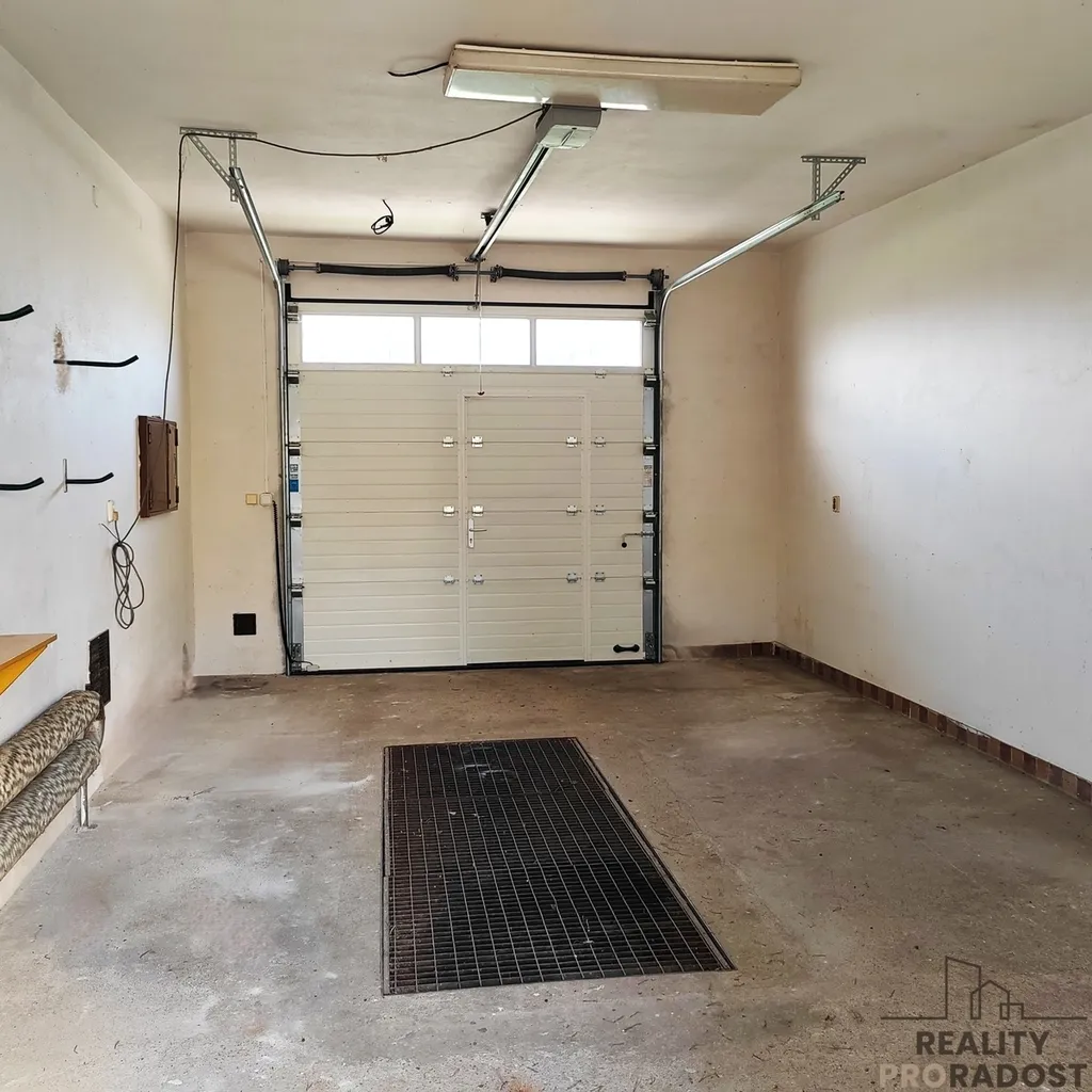 Velkým benefitem je prostorná garáž, kterou lze využít i jako dílnu. Na zahradě se nachází menší zastřešený domek na nářadí a dostatek prostoru pro relax i různé volnočasové aktivity.