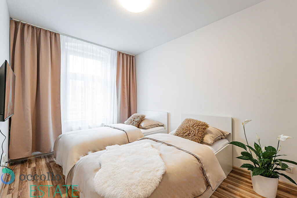V domě se nachází čtyři dvoulůžkové apartmány, dva čtyřlůžkové apartmány a dva čtyřlůžkové mezonetové apartmány. Všechny jsou plně vybavené a připravené k okamžitému provozu. K dispozici je bezkontaktní vstup pomocí systému Previo, který umožňuje hostům příchod bez nutnosti osobního předání klíčů. Rezervační systém je napojený na veškeré inzertní sítě a webové stránky, což zajišťuje pohodlnou správu rezervací a maximální obsazenost. Součástí nabídky je také možnost zajištění uklízečky a garáží.