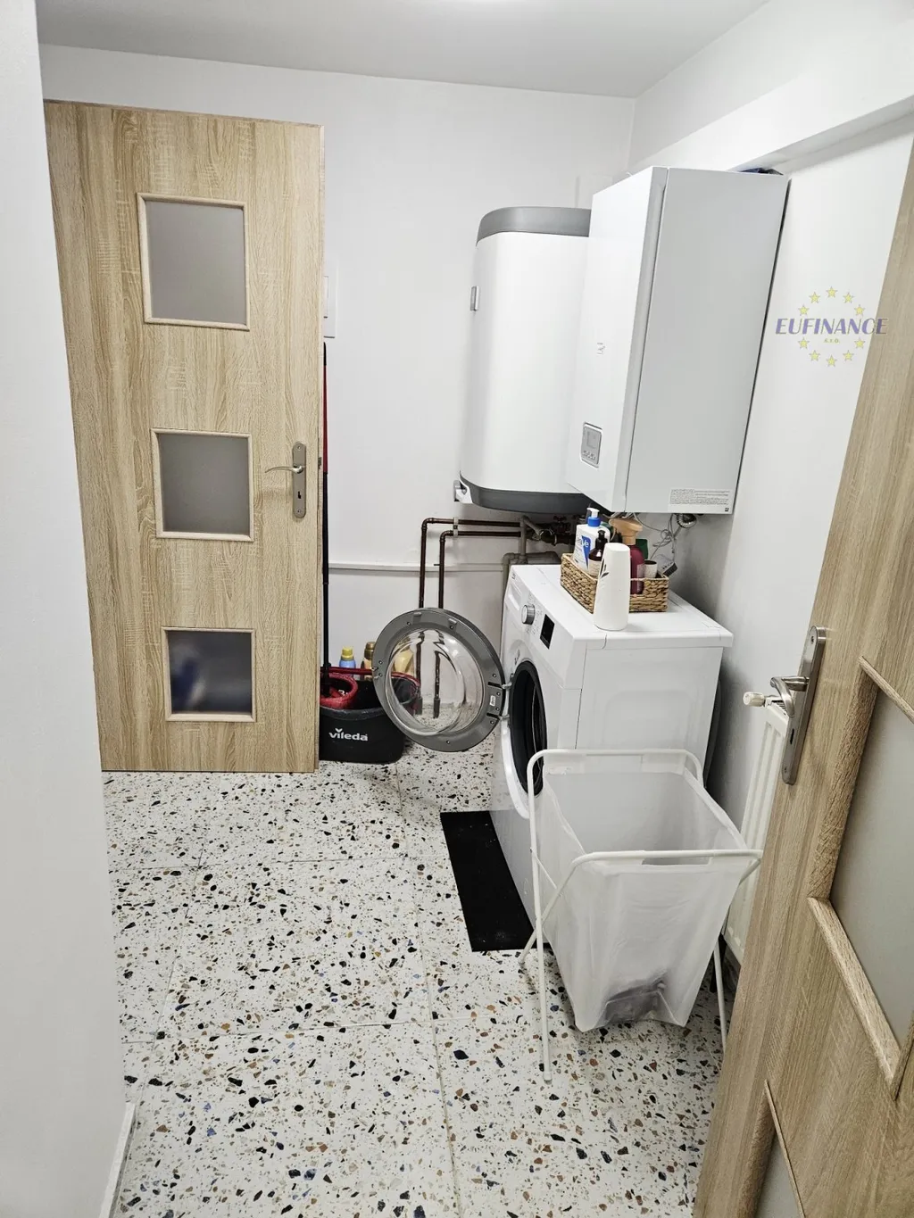 Bytová jednotka se nachází v zadní části v 1. NP cihlového domu, tudíž nemá okna do ulice (byt bez oken). Byt má zděné jádro, nové rozvody topení a vody v plastu a elektřiny v mědi. V bytě jsou k dispozici veškeré inženýrské sítě, kabelová televize vč. rychlostního internetu. Byt je vytápěn elektro kotlem do radiátorů. Na podlahách je položena dlažba a plovoucí podlaha.