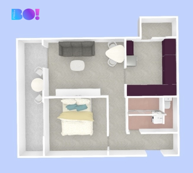 Vnitřní výměra všech místností je 45,3 m², díky praktické dispozici jsou místnosti tak akorát velké. K tomu jsou využívány 2 zasklené balkony o výměře 9,8 m². Ten větší orientovaný na západ navazuje podél obývacího pokoje i ložnice a můžete si na něm krásně vychutnat kafe, přečíst knížku nebo jen tak odpočívat. Ten menší orientovaný na sever je přístupný z kuchyně a slouží třeba k pěstování bylinek nebo zeleniny.