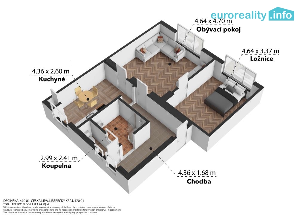 Prodej bytu 2+1, Česká Lípa, Děčínská, 55 m2