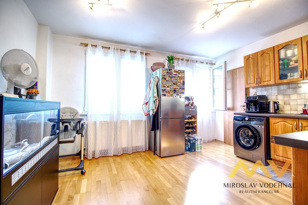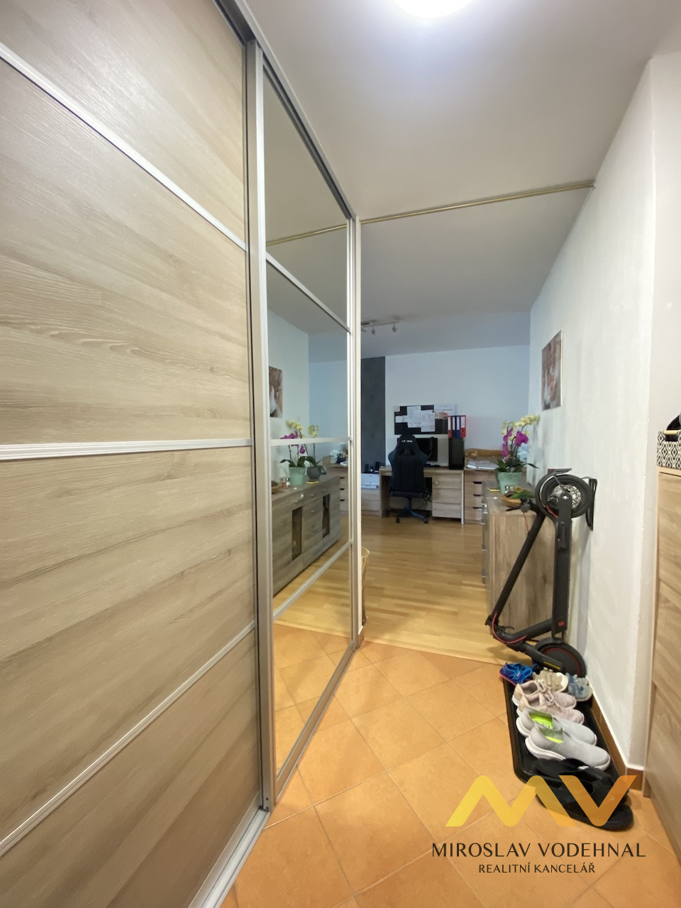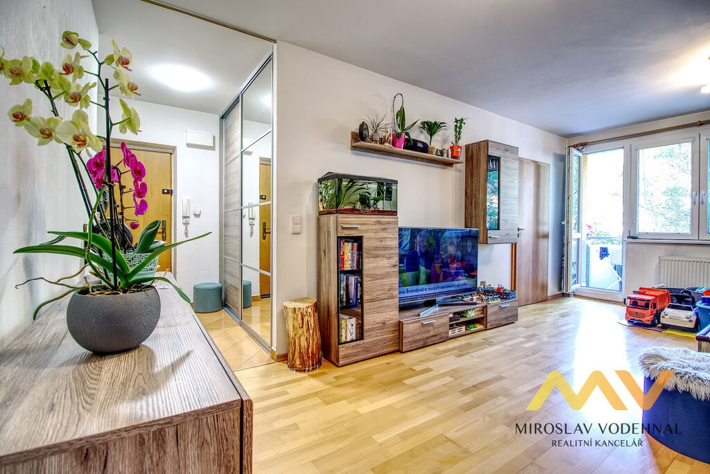 Byt původně dispozičně řešený jako 3+1 prošel rekonstrukcí a úpravou na prostorné 2+1. Velká obytná kuchyň byla propojena průchodem bez dveří s obývacím pokojem, čímž vznikl vzdušný a světlý obytný prostor. Dále byt nabízí samostatnou ložnici, vstupní chodbu s velkou vestavnou skříní, koupelnu s vanou a samostatným WC. K bytu náleží balkón s výhledem do zeleně a sklepní kóje v suterénu domu.